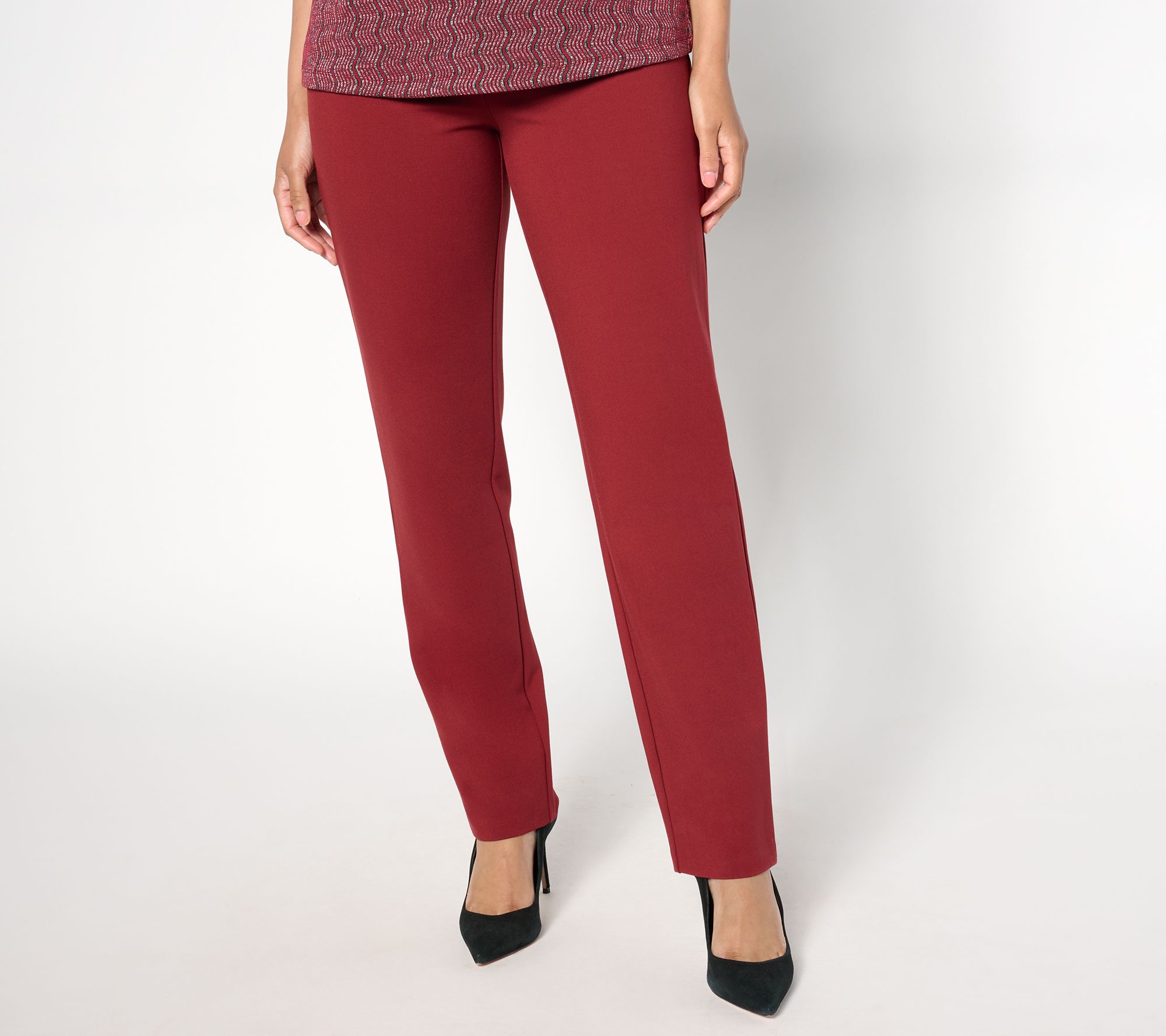 Flattering fit. Versatile wearing options. Sometimes a simple polished ponte knit pant is the answer to standing in front of your closet wondering what you'll wear today. No brainer. From Dennis Basso.