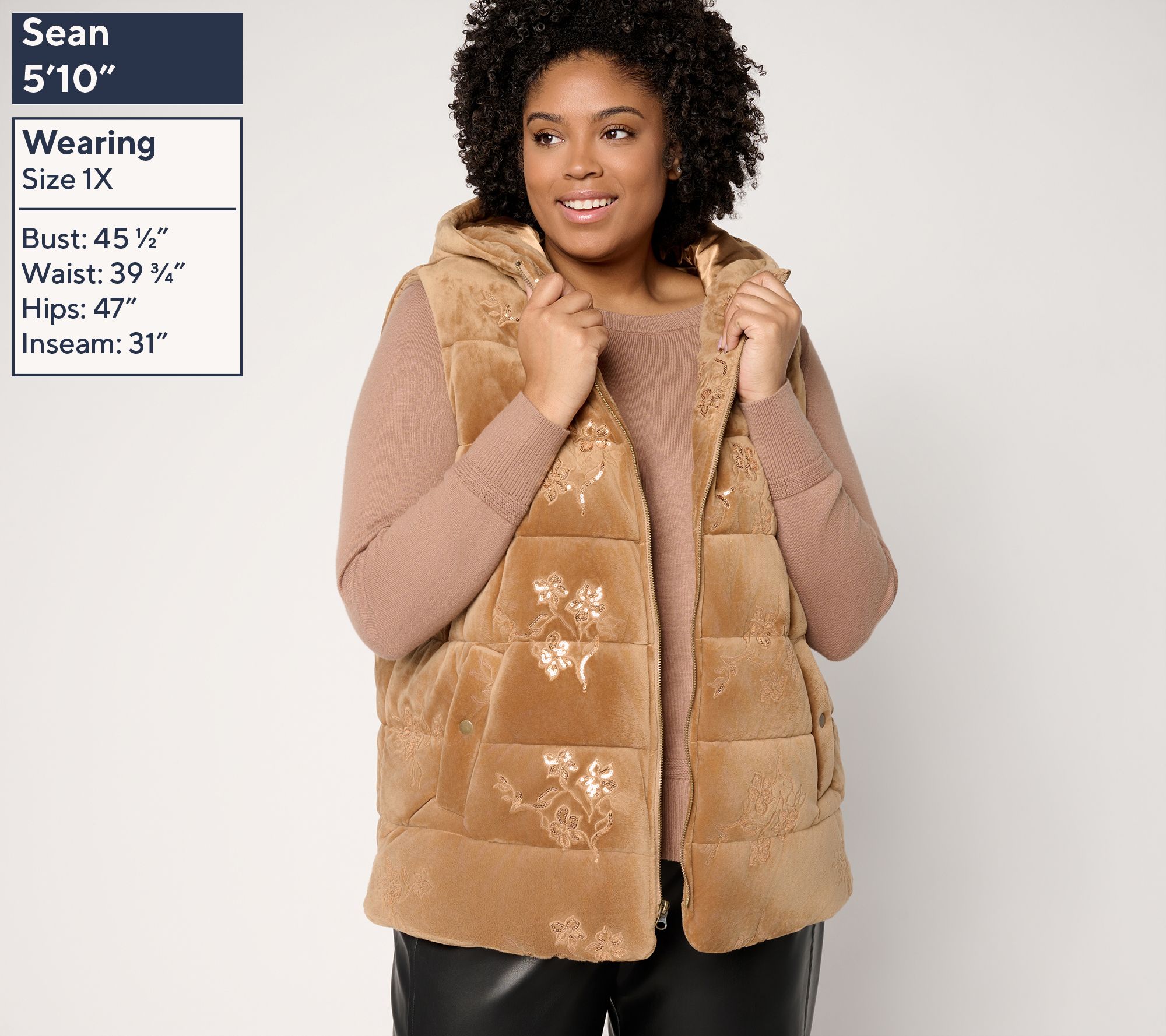 Dennis Basso has done it again. He's taken a cold-weather staple -- like this zippered vest -- and elevated the look to celeb status with plush velvet and a splash of sequinned sparkle. The result? One. Posh. Puffer. Its quilted, fully lined, and finished with an oversized hood (a bonus when biting winds begin to blow). From Dennis Basso.
