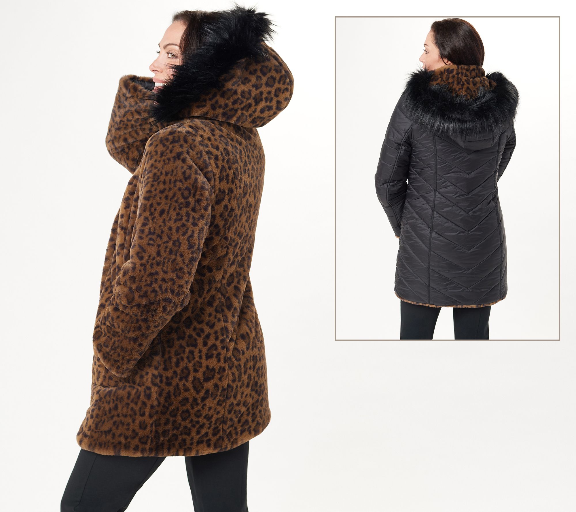"As Is" Dennis Basso Reversible Faux Fur to Water Resistant Coat