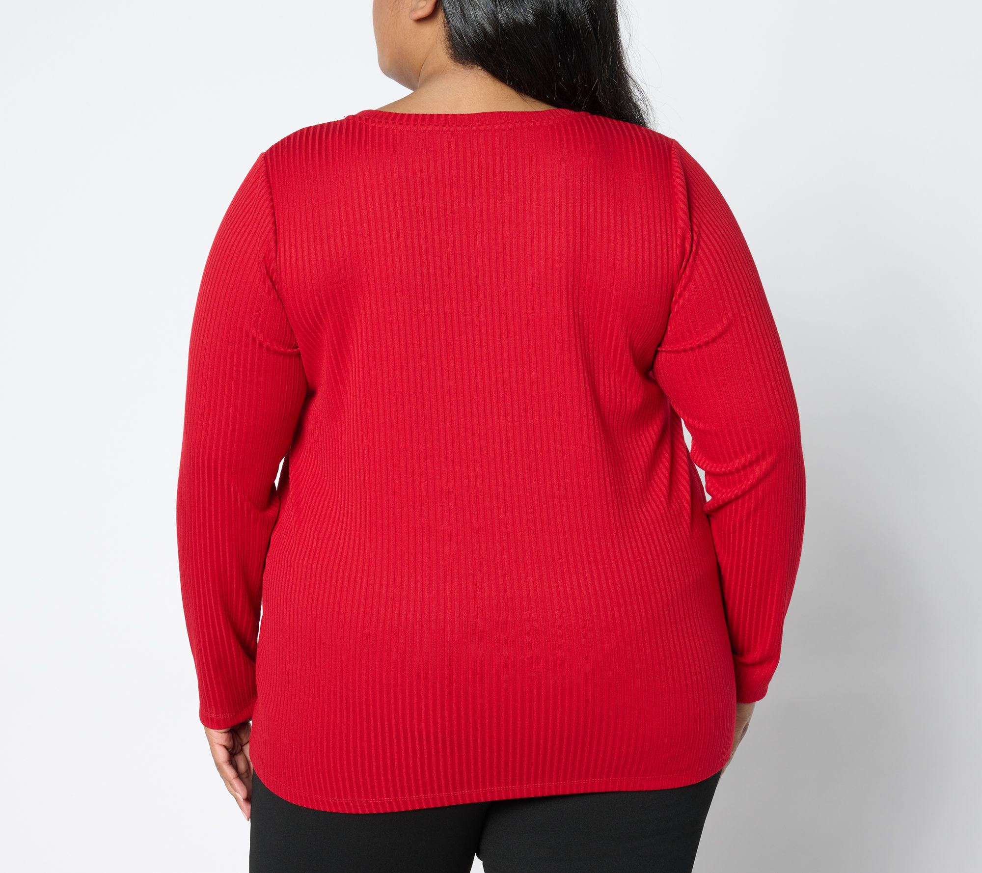 Silky, shape-flattering ribbing puts this graceful tunic in constant rotation in your fall and winter closet. Layer or not -- side slits add ease of movement! From Dennis Basso.