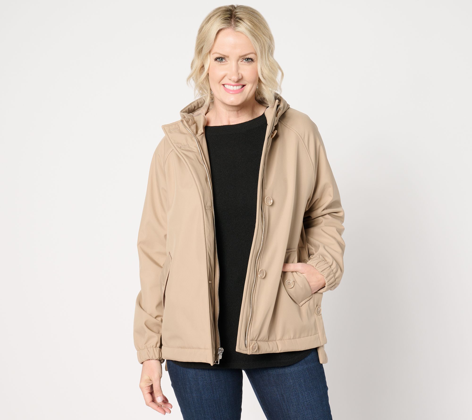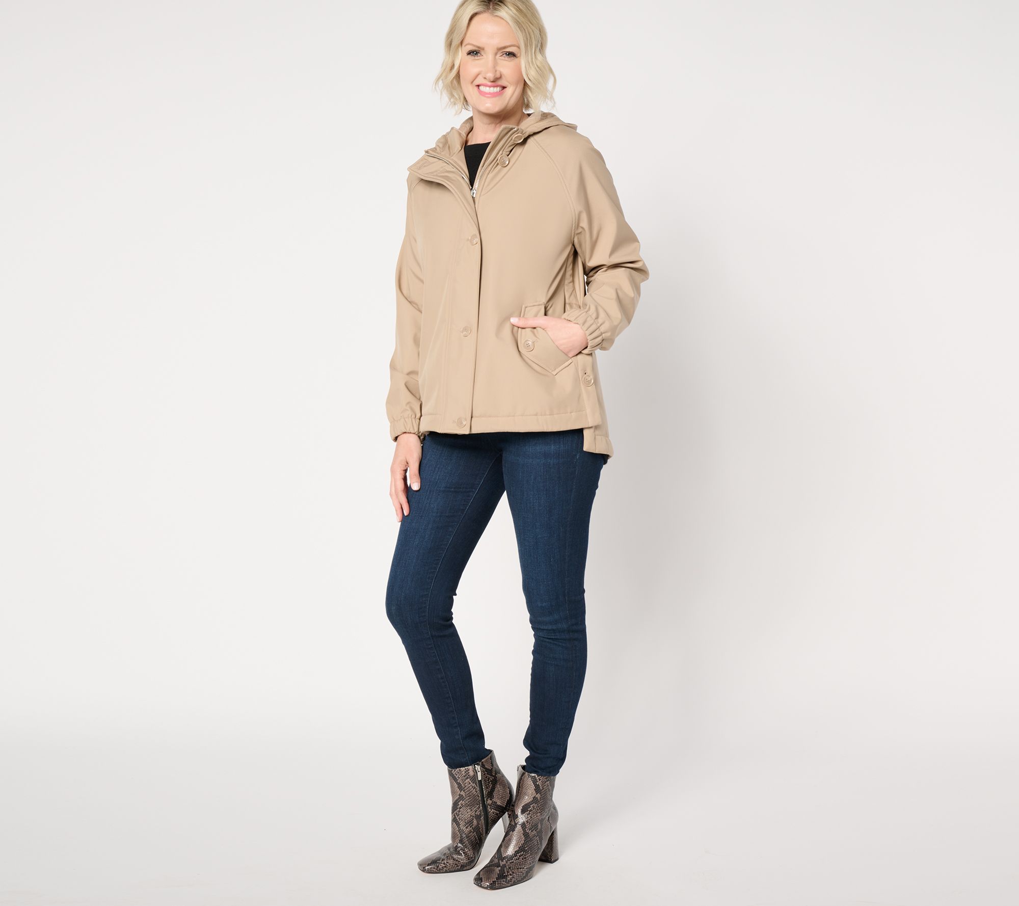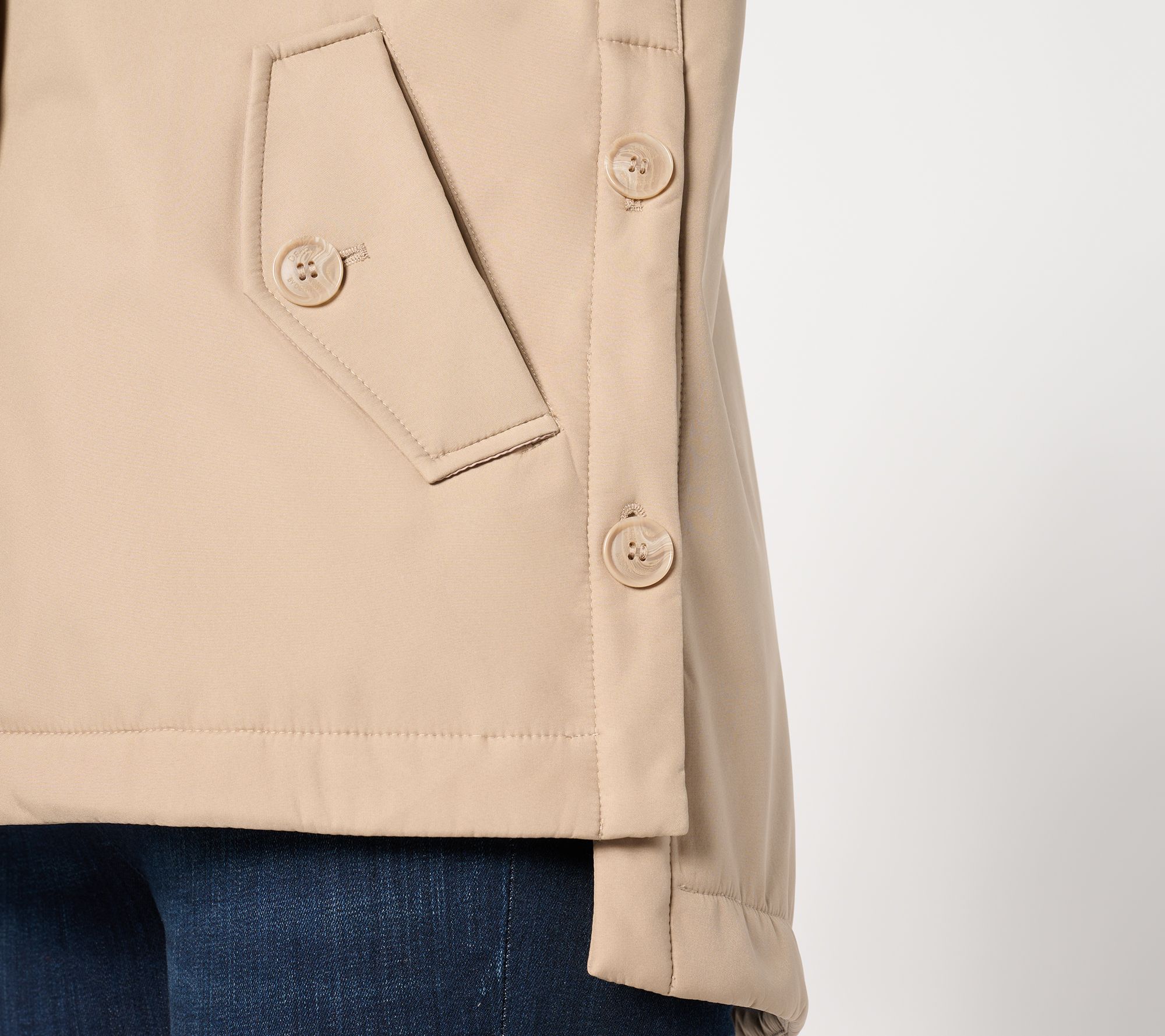 Outerwear, meet flair! Adjustable side buttons and a doubly good front closure make Dennis Basso's V-Luxe coat as practical as it is pretty -- from any angle! From Dennis Basso.