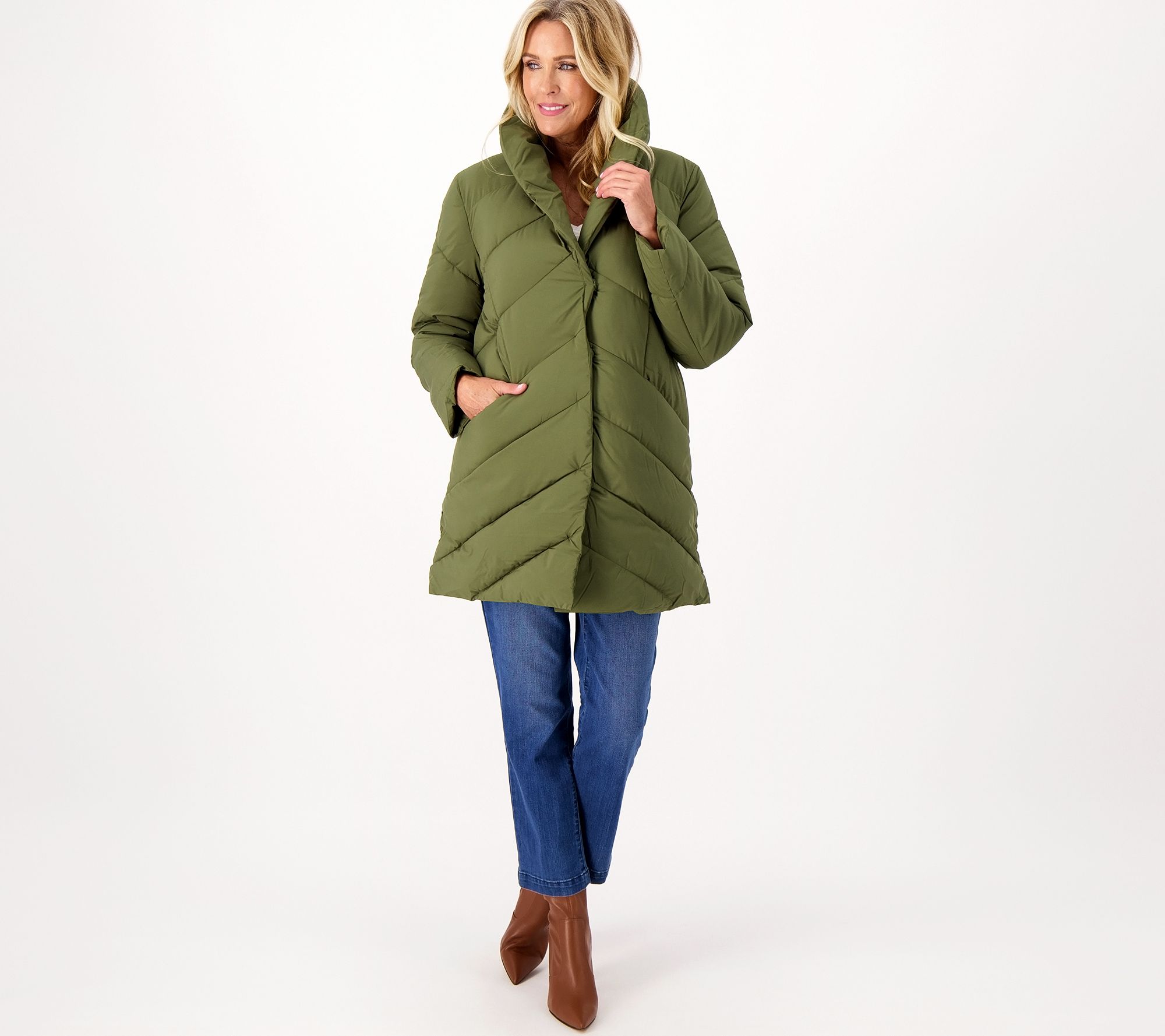 Light on weight, big on warmth. This chic puffer coat will chase away the chill (& keep you looking your best) wherever colder temperatures take you. From Dennis Basso.