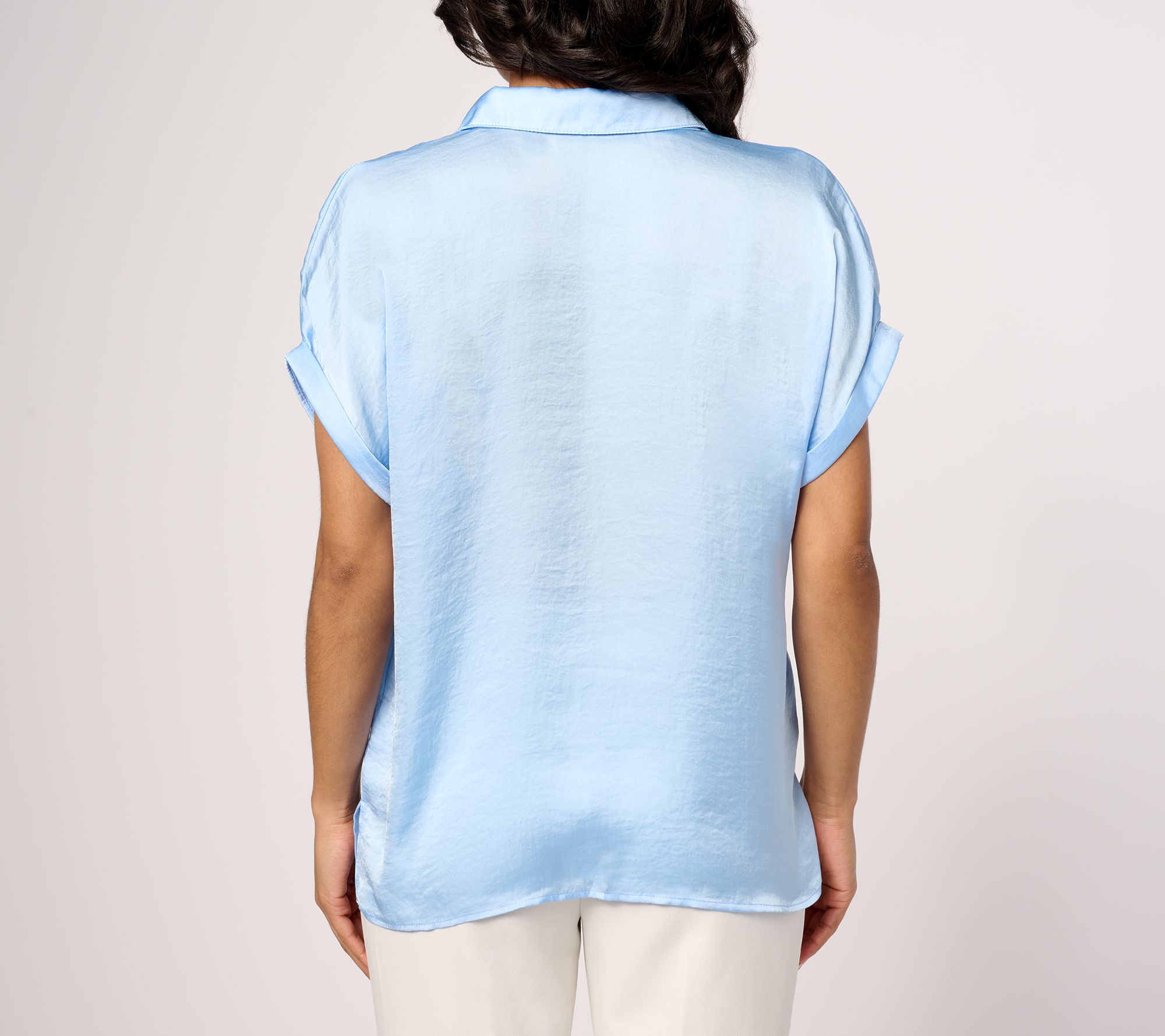"As Is" Dennis Basso Woven Camp Shirt with Rolled Sleeves