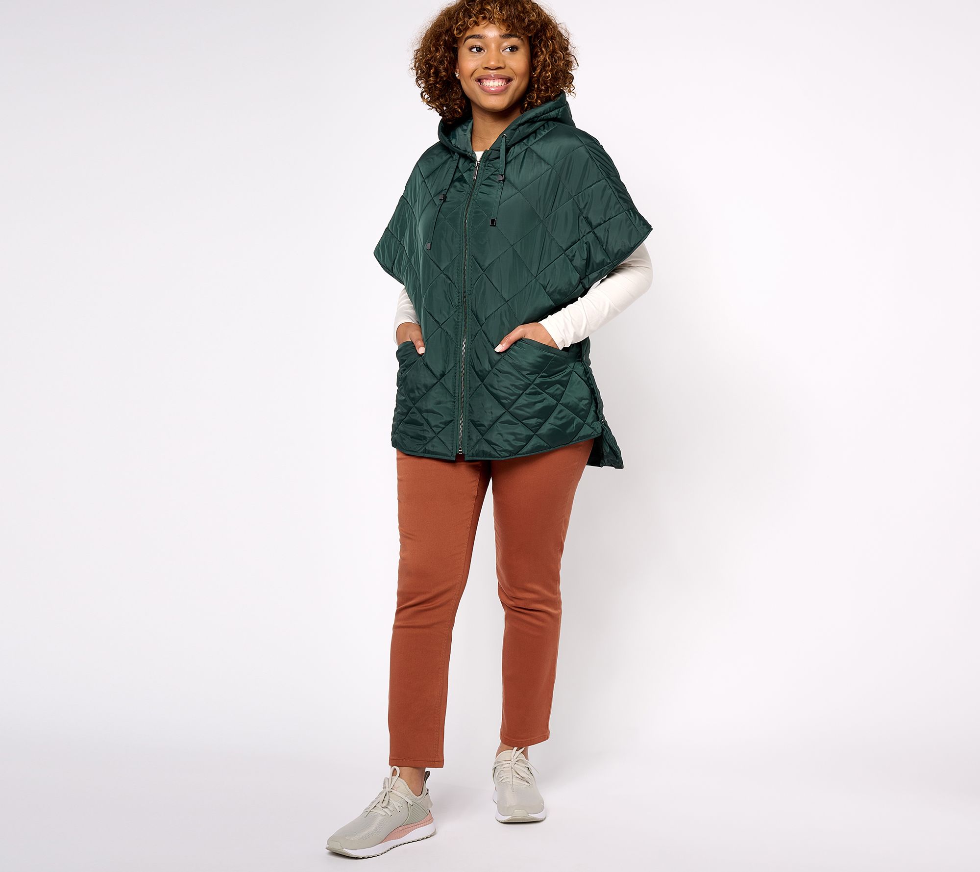An excellent alternative to bulky down jackets and heavy wool coats, this zip-front poncho is a just-right topper for when there's a chill in the air but you still want to show off your OOTD. From Dennis Basso.