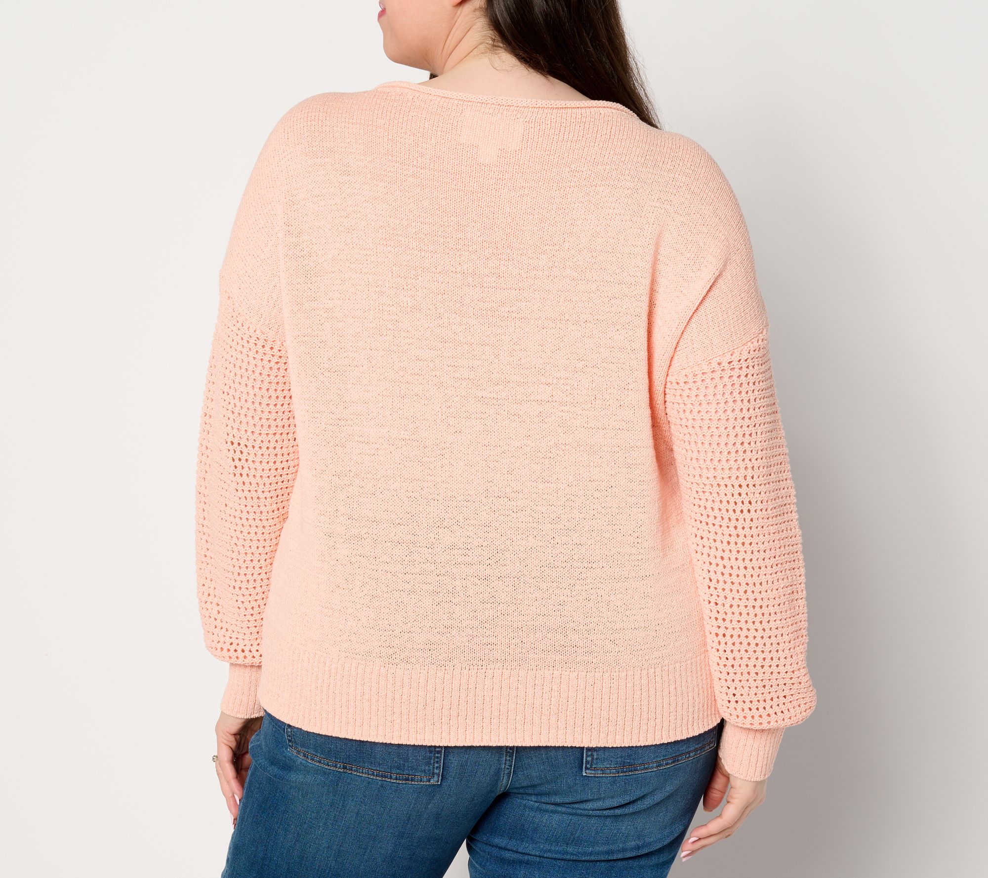 Reach for this light and airy sweater when you need a simple-yet-stylish option to pair with your favorite denim and some fashionable flats. The open-work stitching along the sleeves is a can't-miss detail that adds visual appeal to the look. From Destination 365.