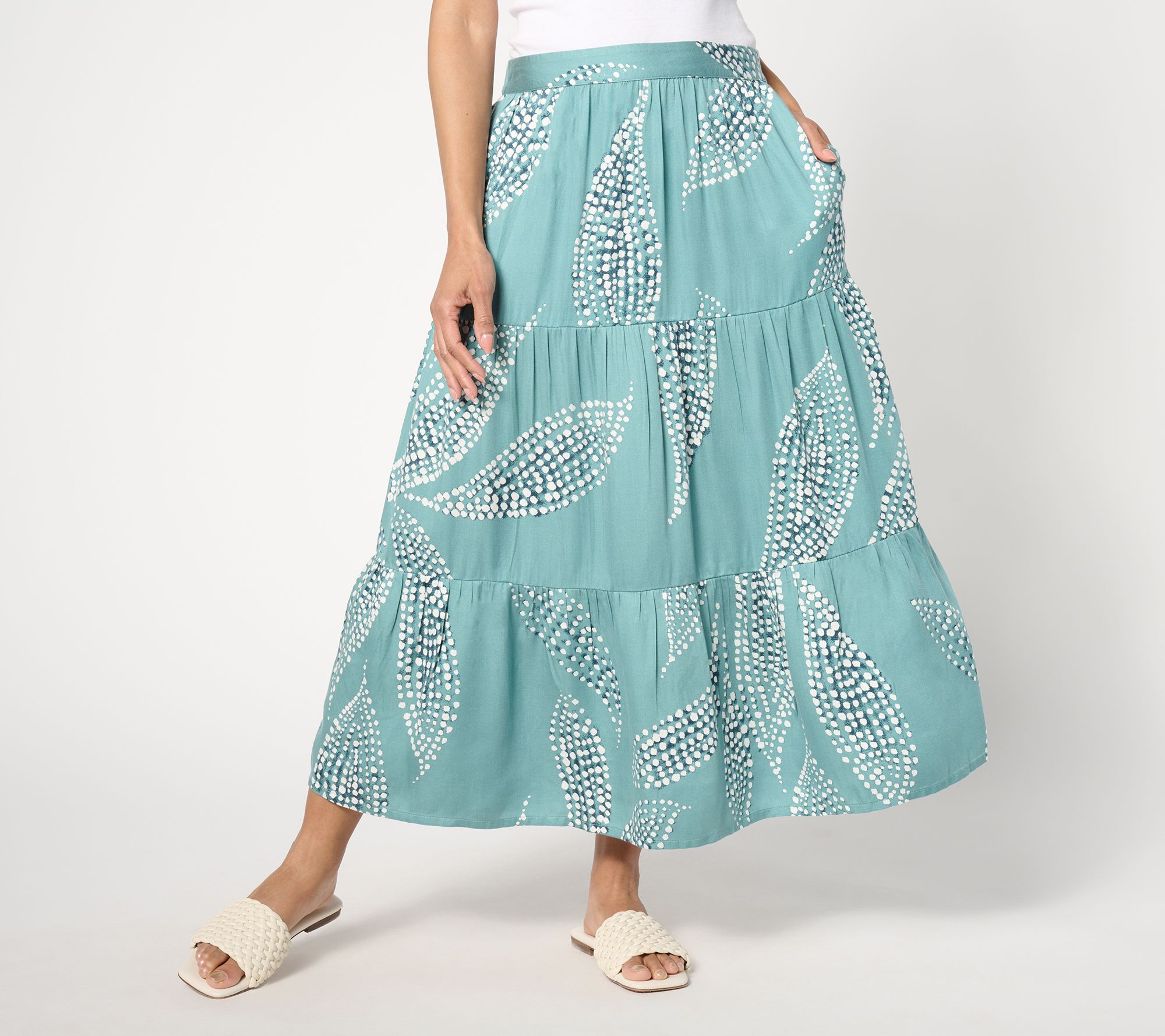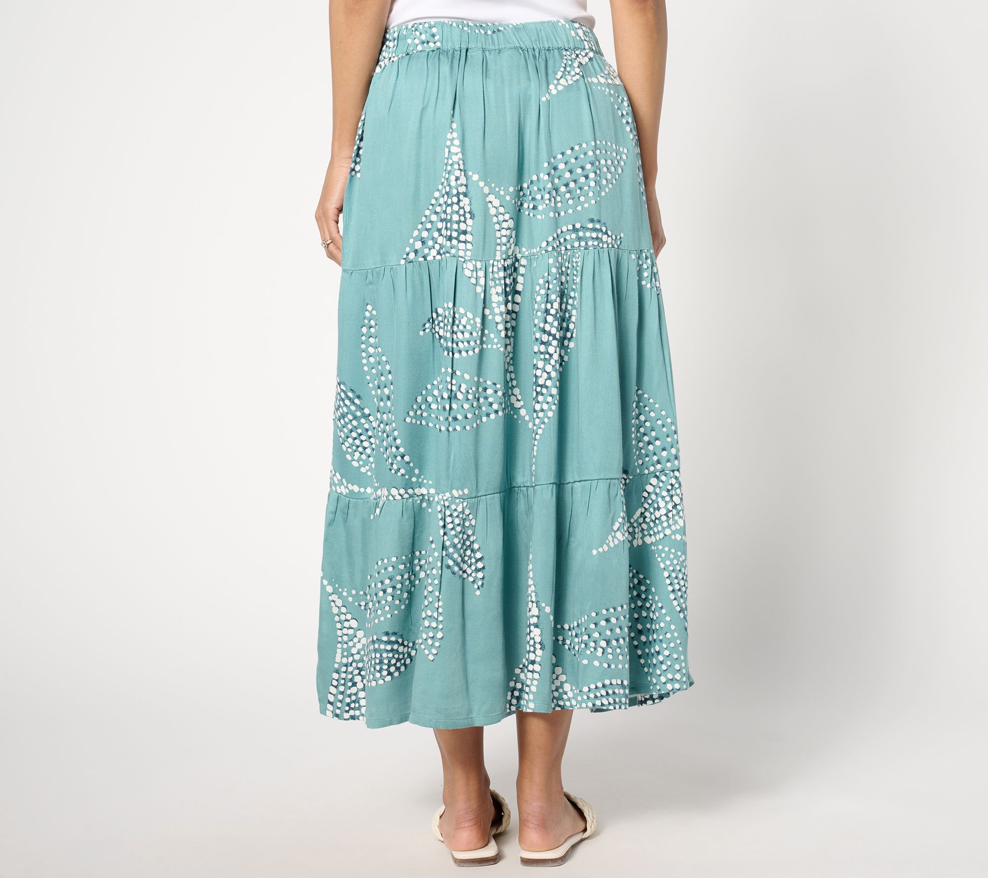 "As Is" Destination 365 Petite Printed Tiered Pull On Midi Skirt