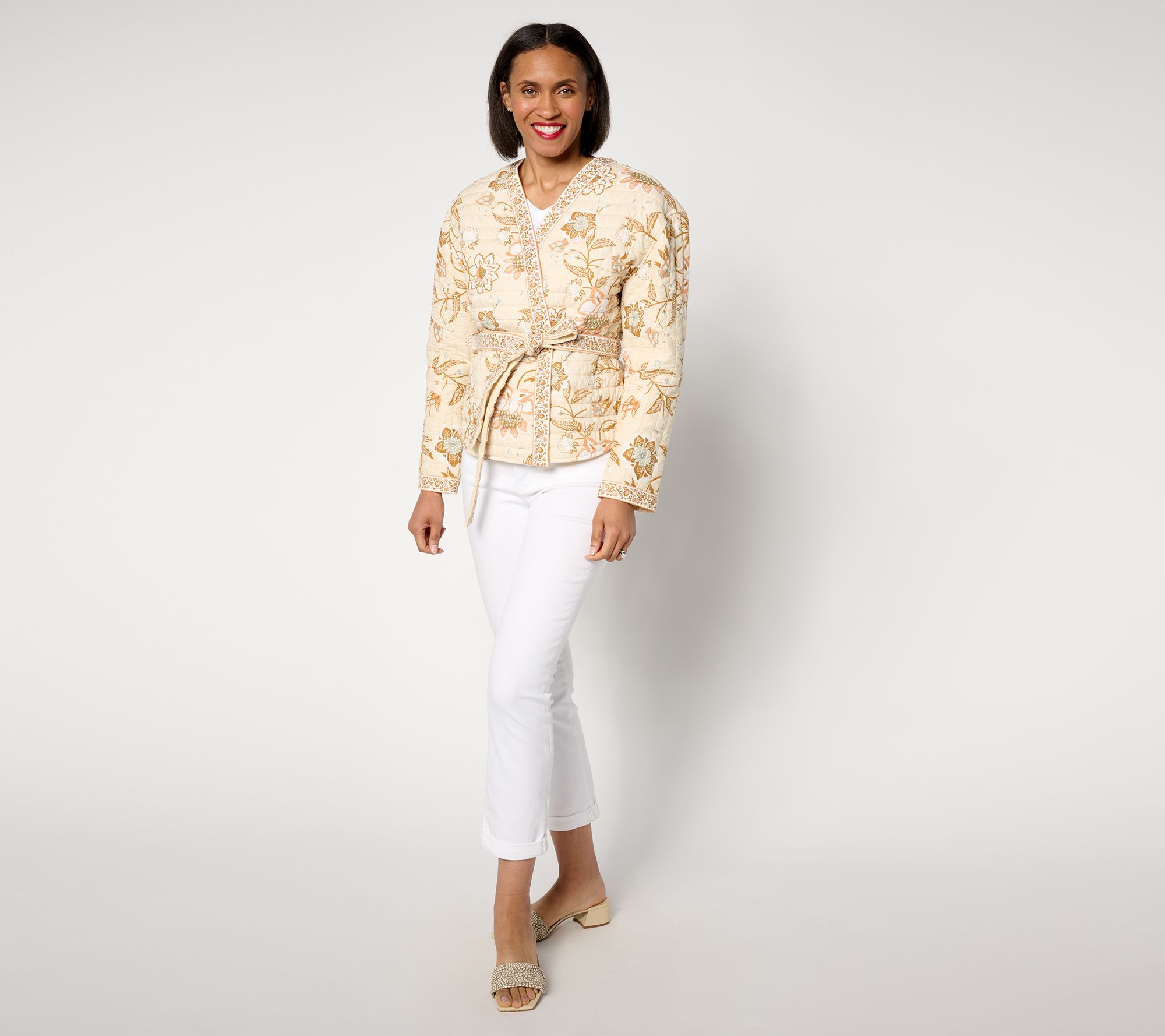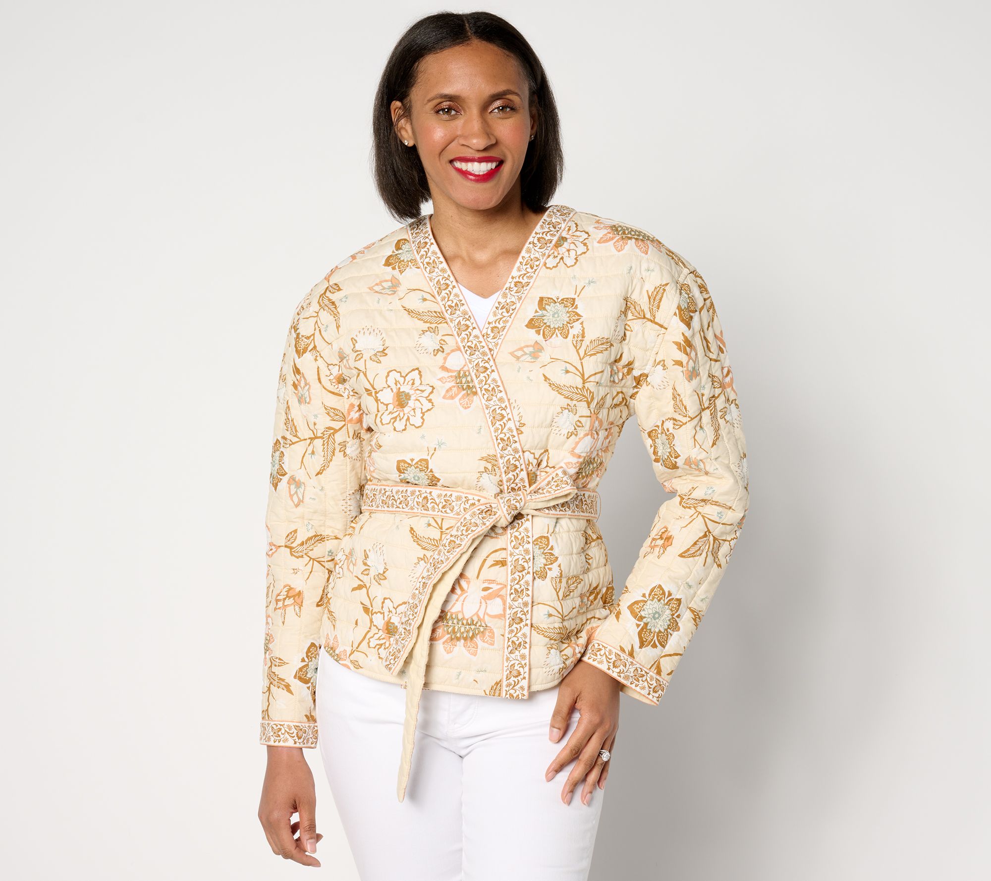 Elevate your OOTD with this lightweight quilted jacket. The figure-flattering wrap silhouette and belted waist accentuates your curves and looks good on any body type. From Destination 365.