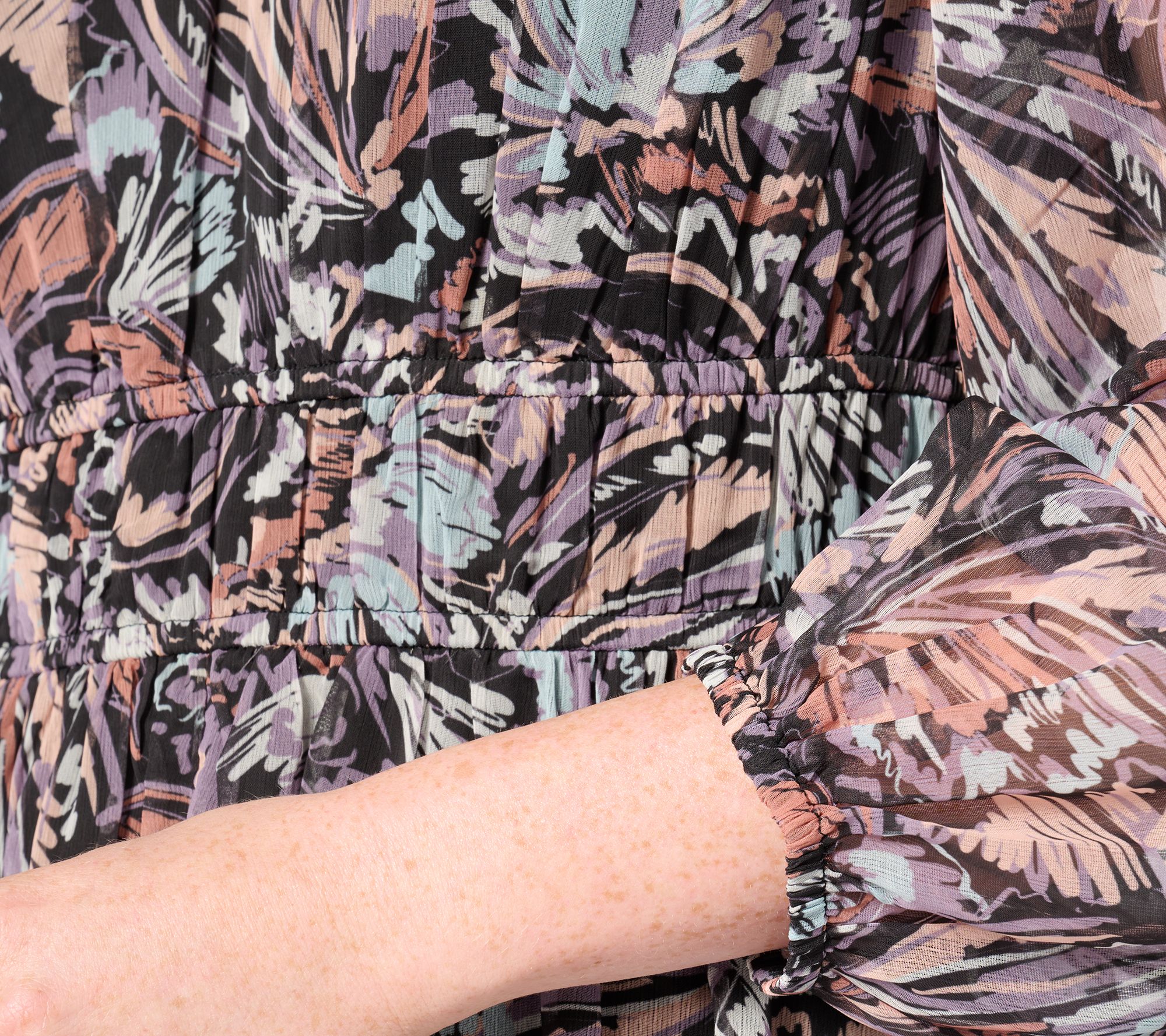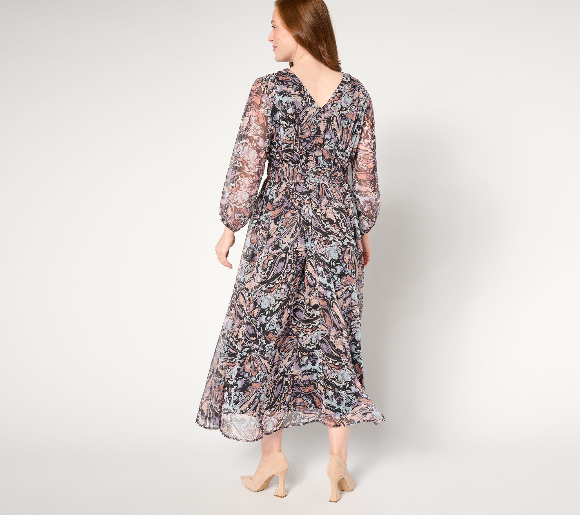 "As Is" Destination 365 Printed V-Neck Chiffon Midi Dress