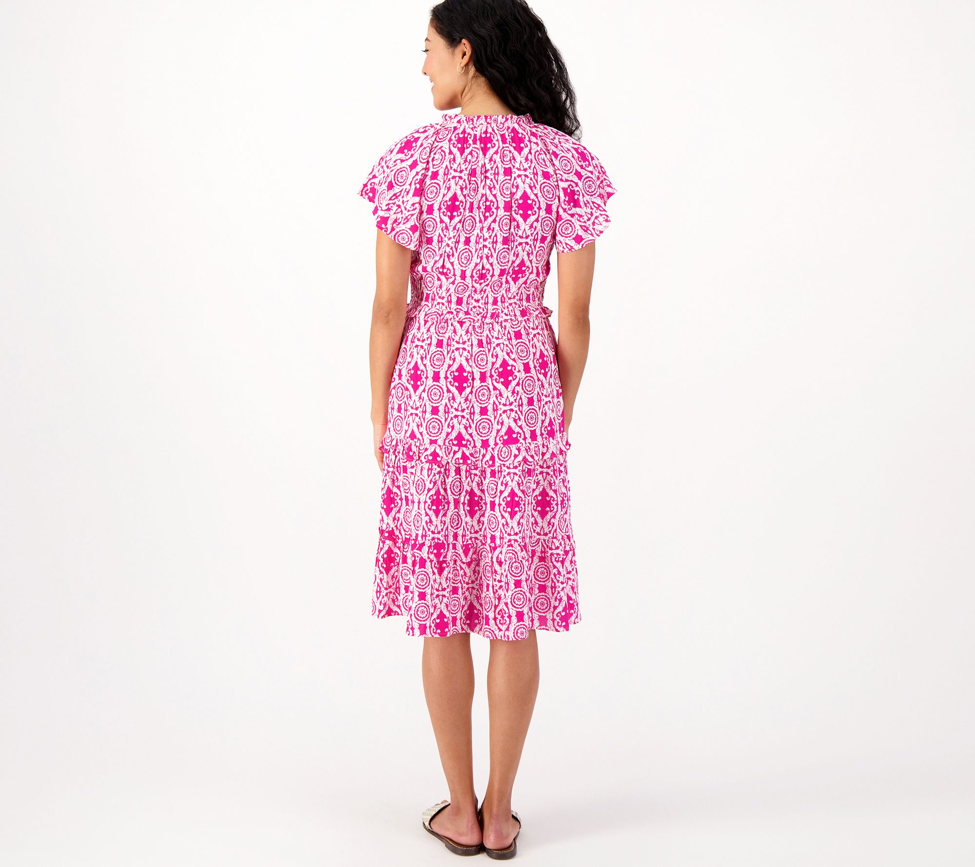 "As Is" Destination 365 Regular Printed Flutter Sleeve Tiered Dress