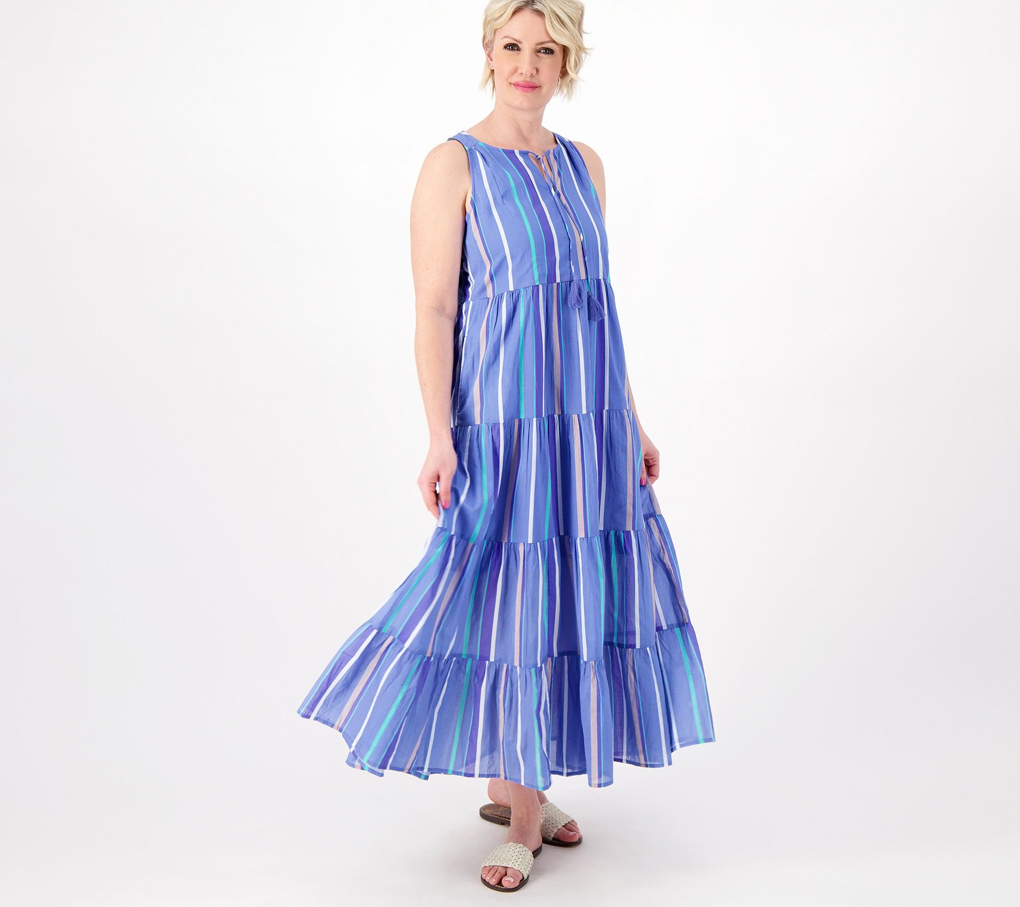"As Is" Destination 365 Regular Striped Tiered Maxi Dress