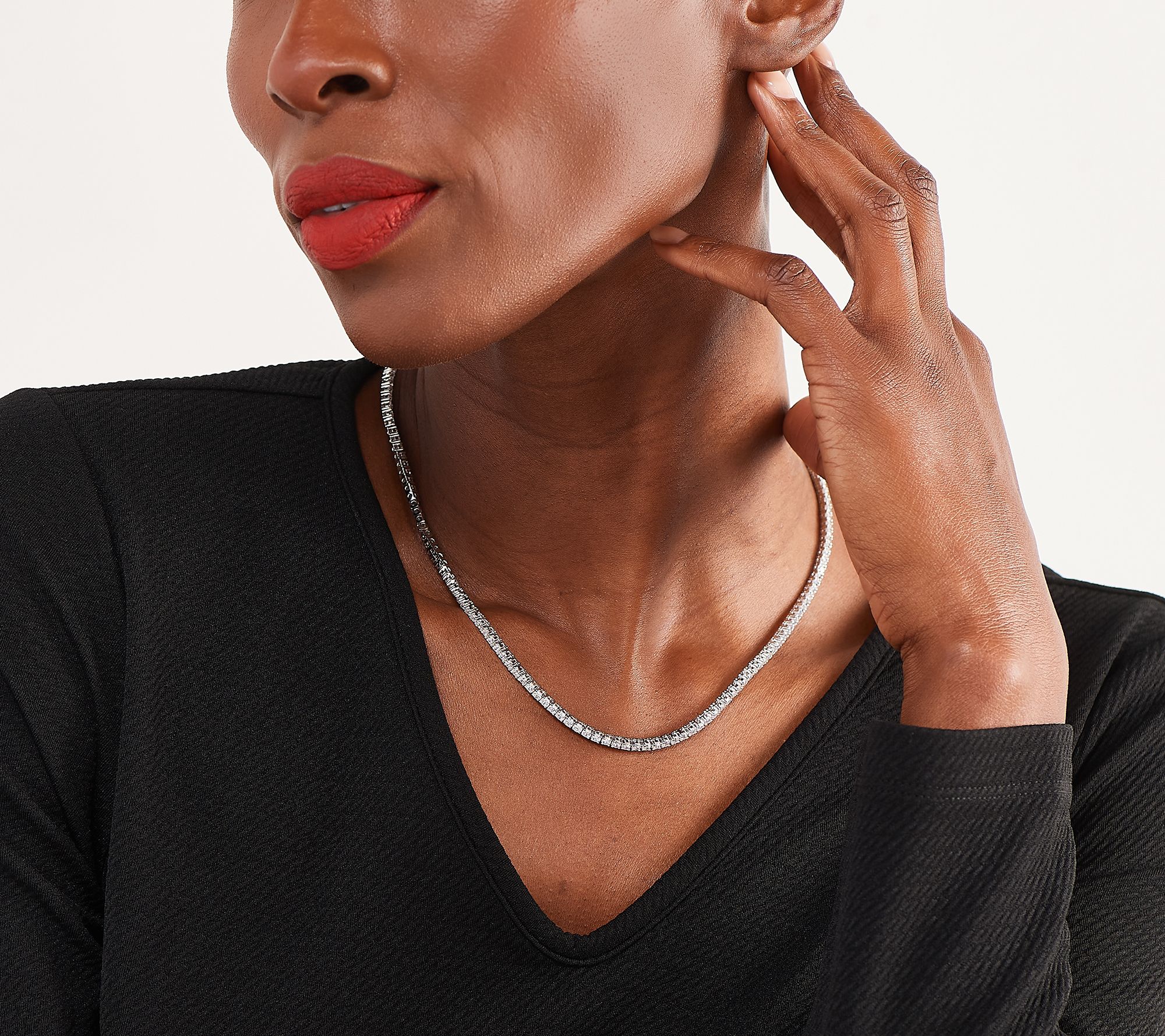 The piece every style-setter should have in their jewelry wardrobe? A tennis necklace, of course. This classic design serves up the can't-look-away sparkle again and again. Love, love!