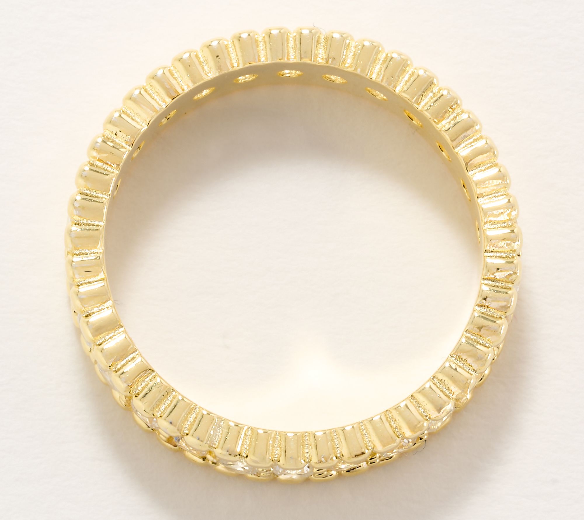 • Round Diamonique simulated diamonds; beaded border; eternity band design