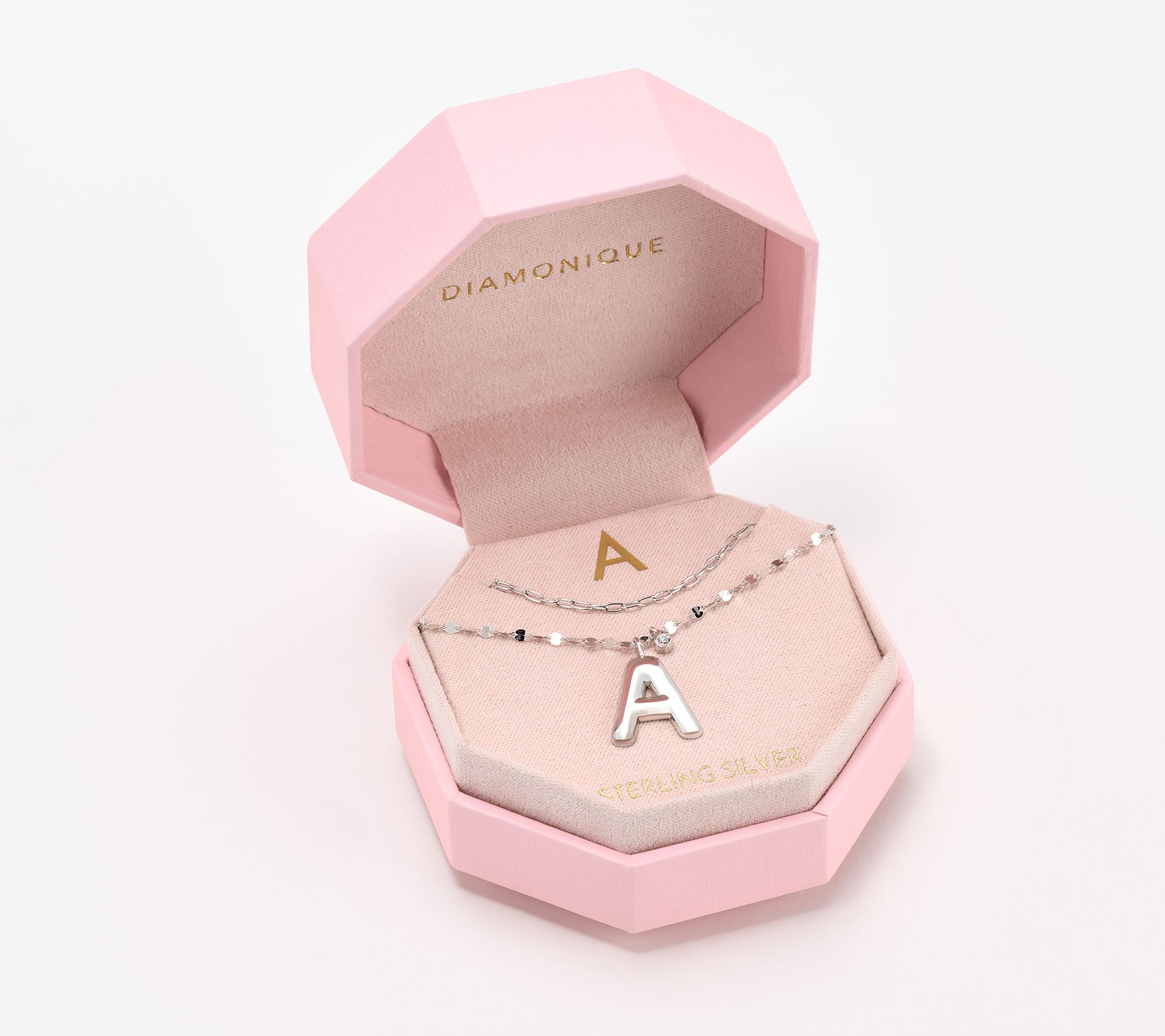 "As Is" Diamonique Boxed Layered Chain Initial Necklace, SS