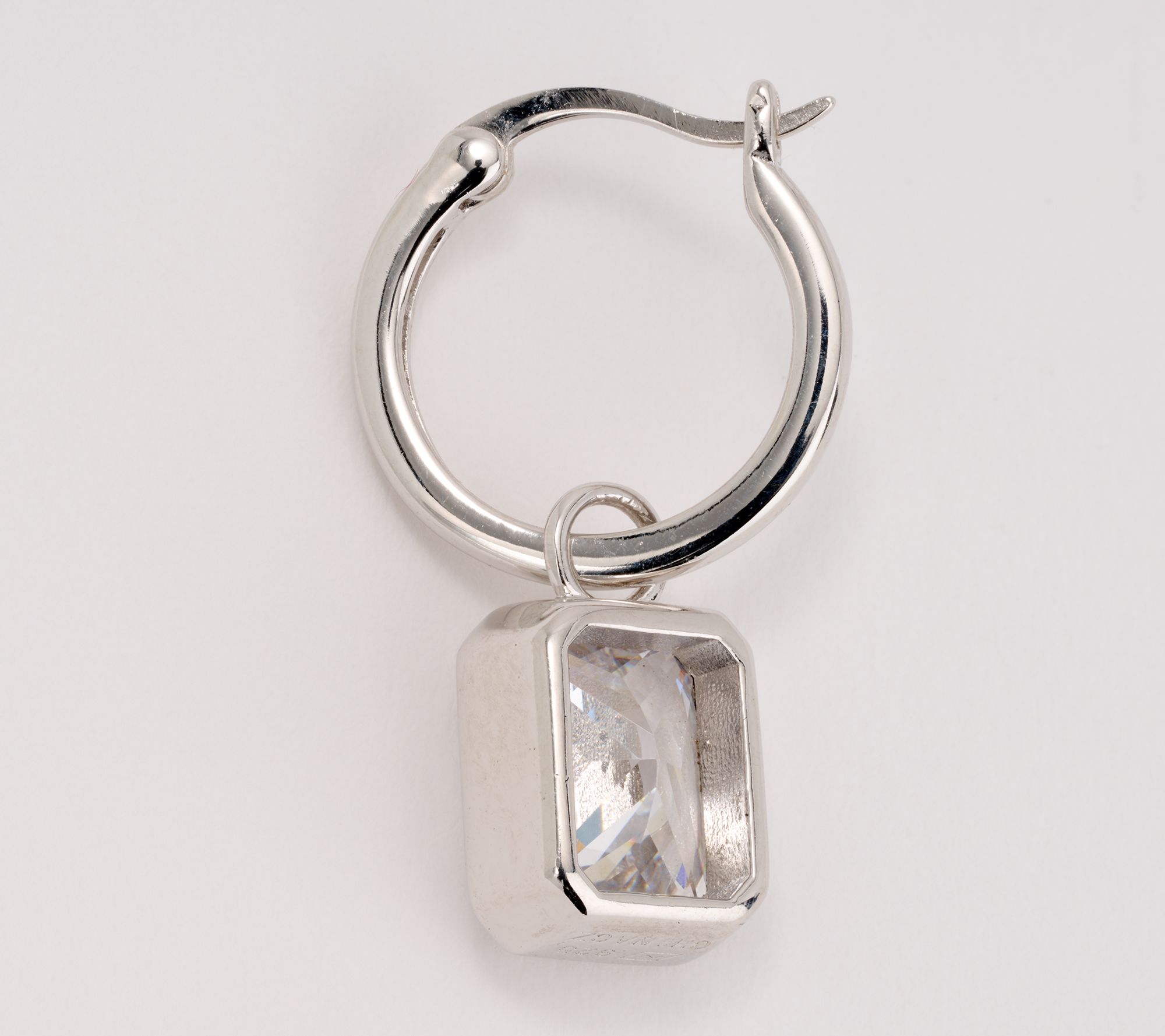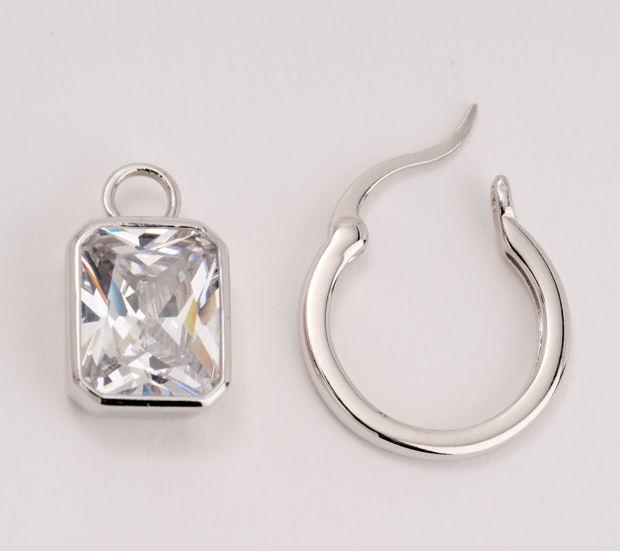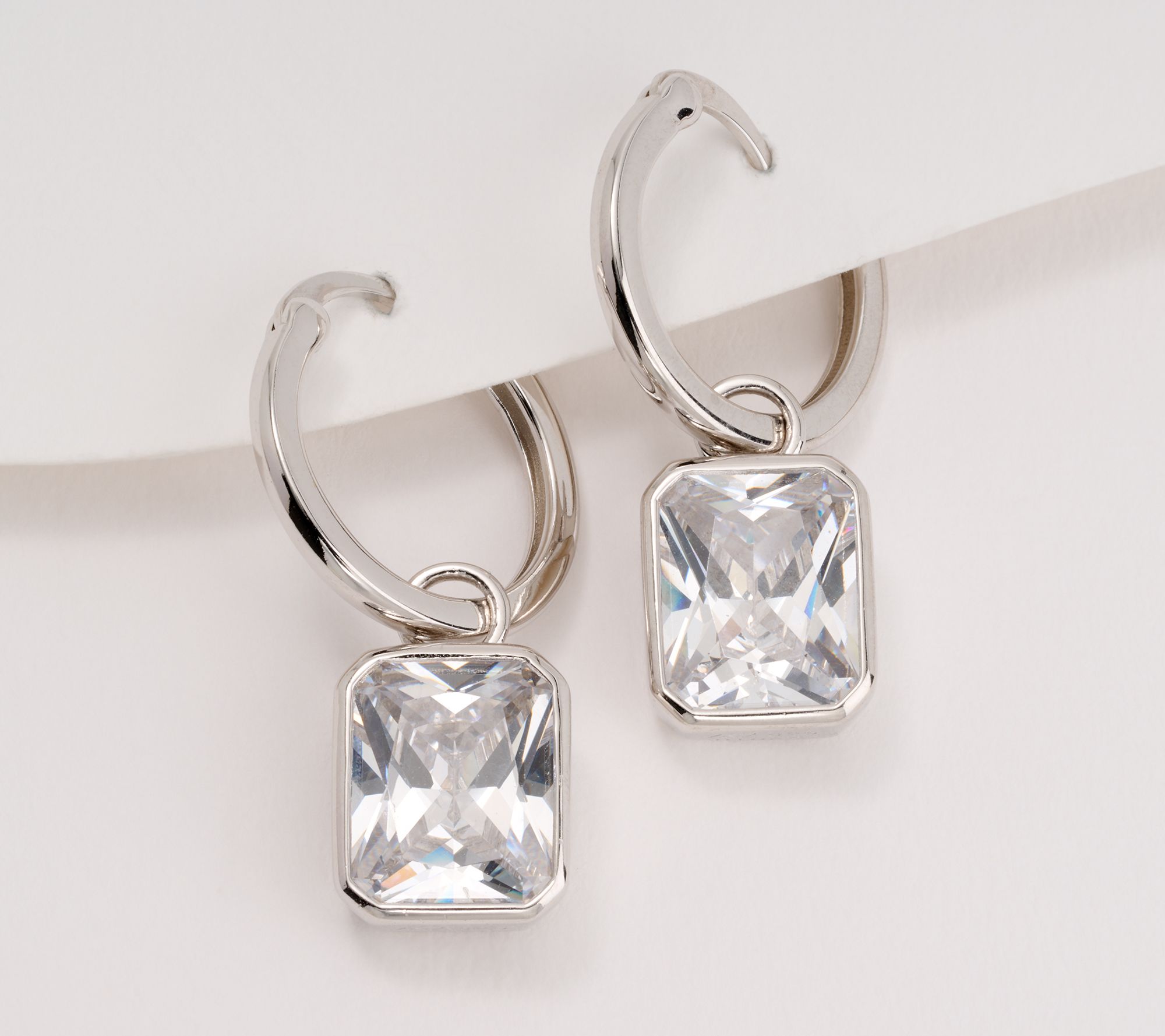 • Huggie hoop; Diamonique simulated diamond dangle; polished finish