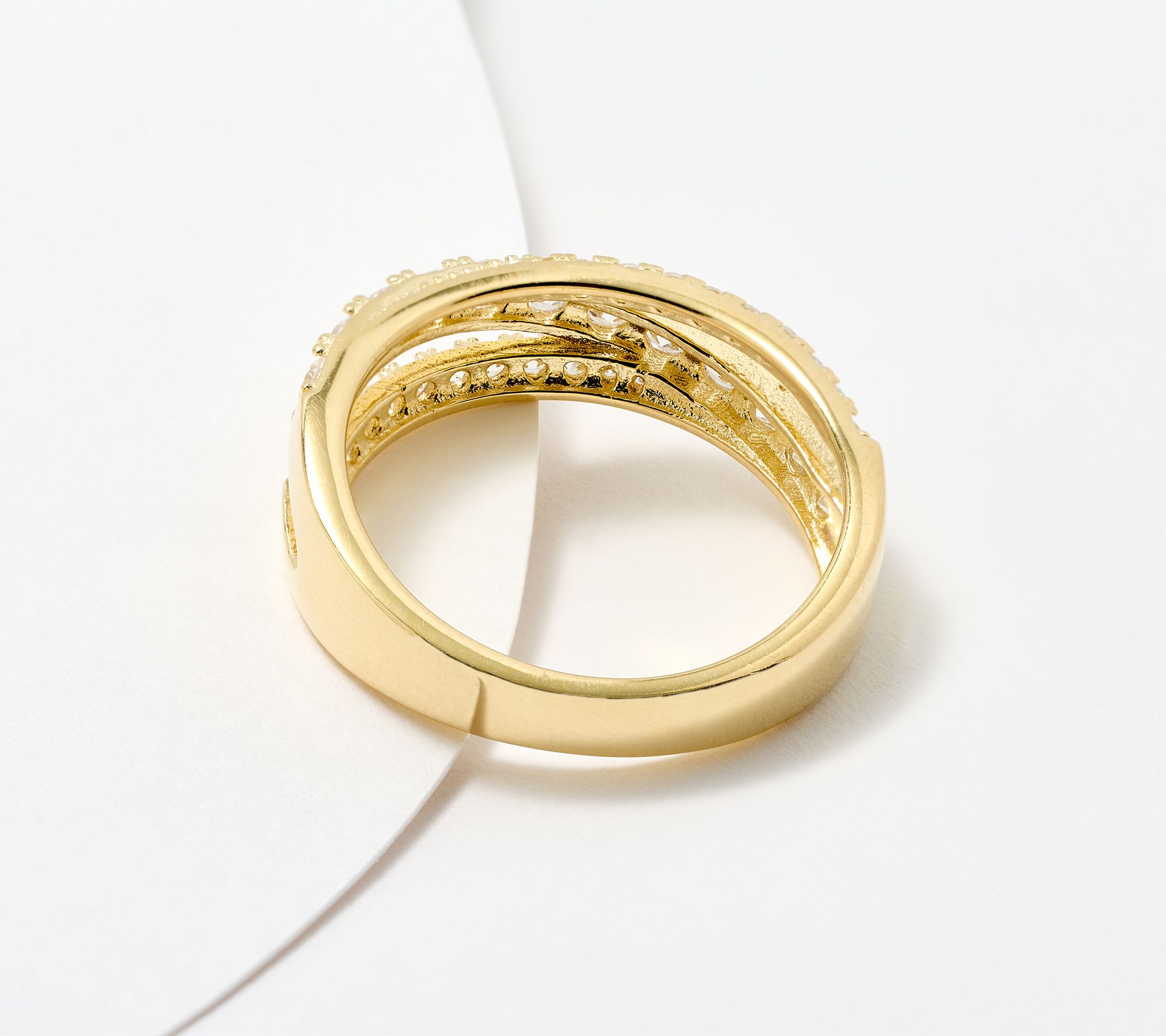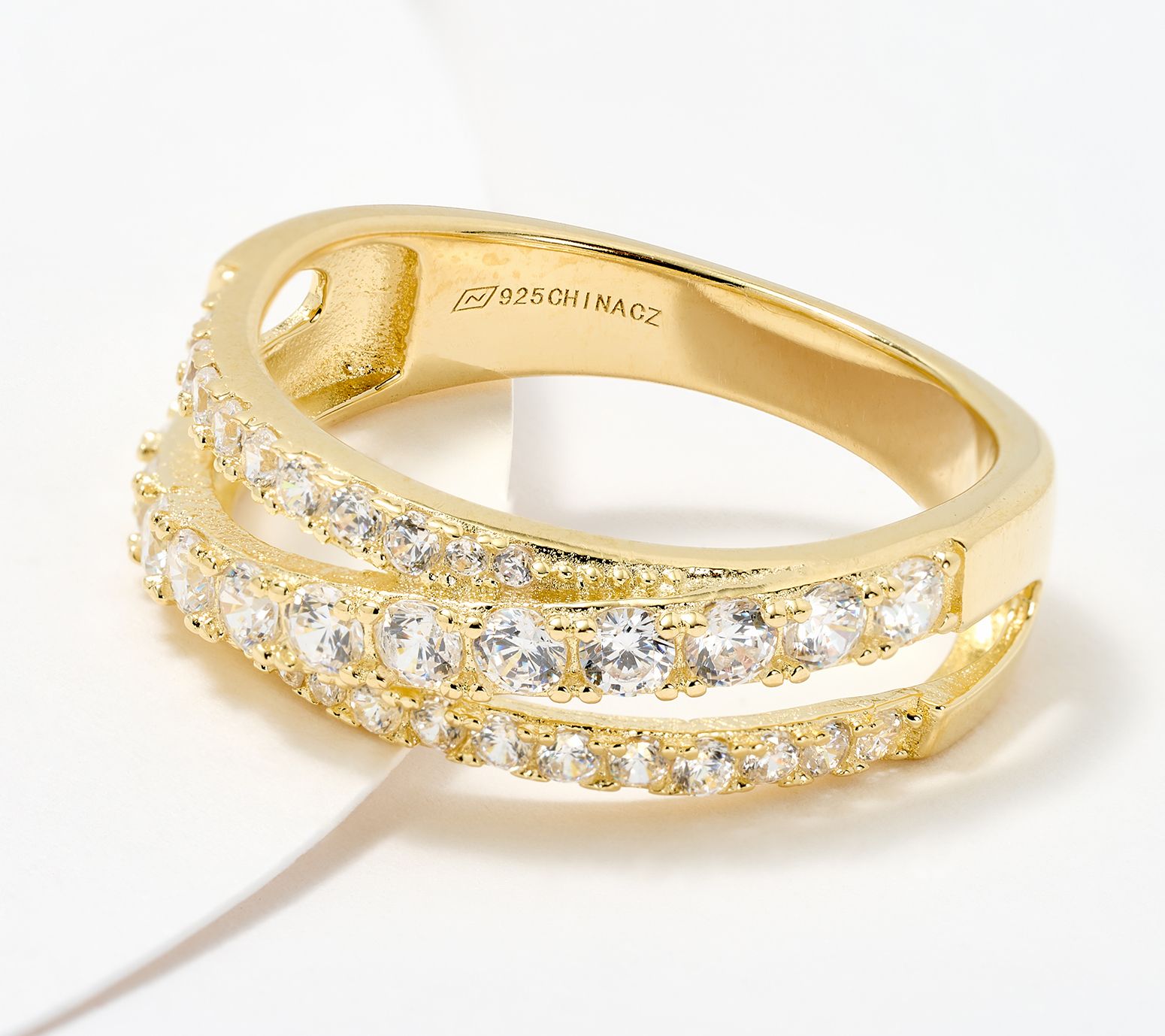 • Bypass design; two sizes of round-cut cubic zirconia