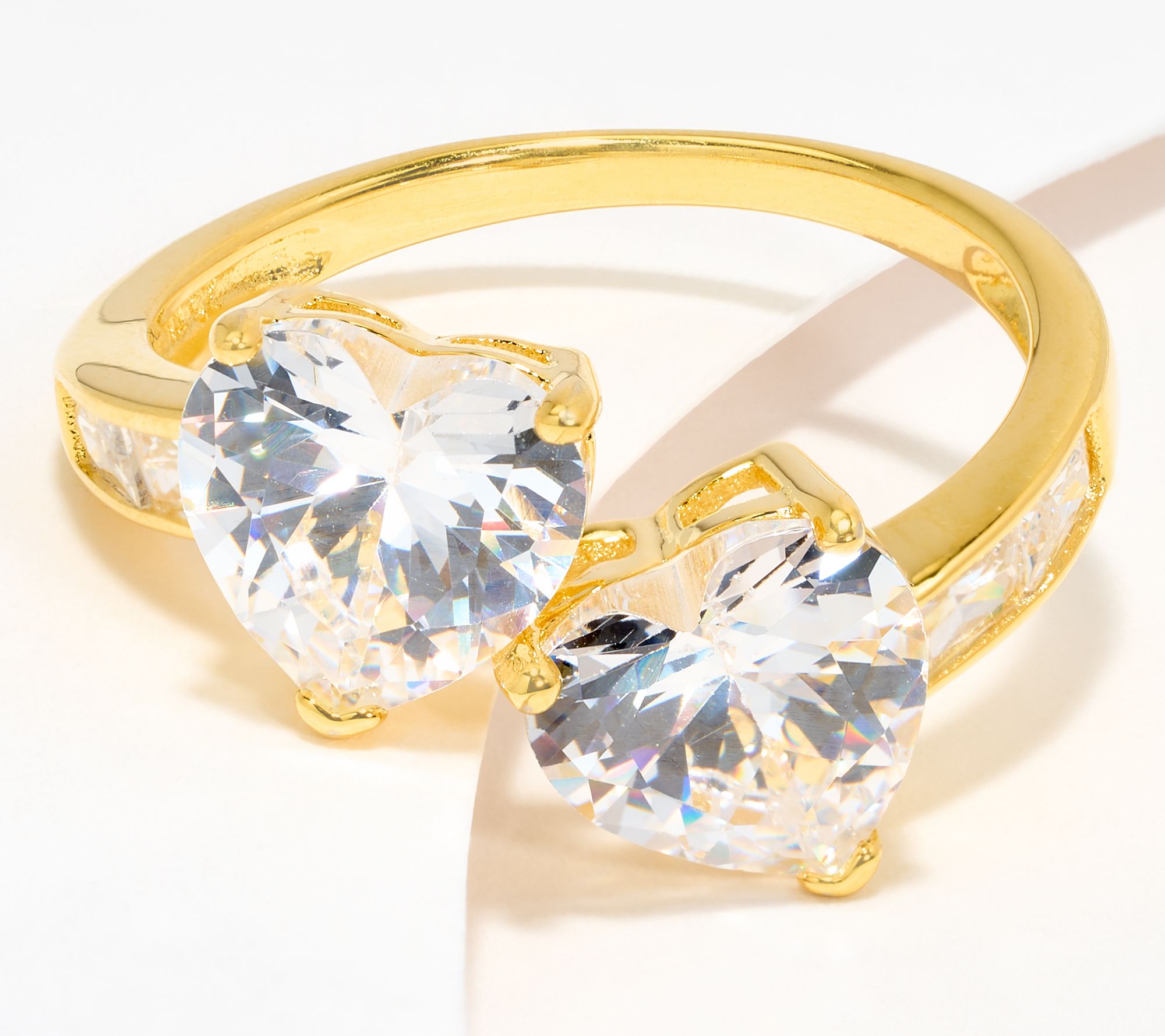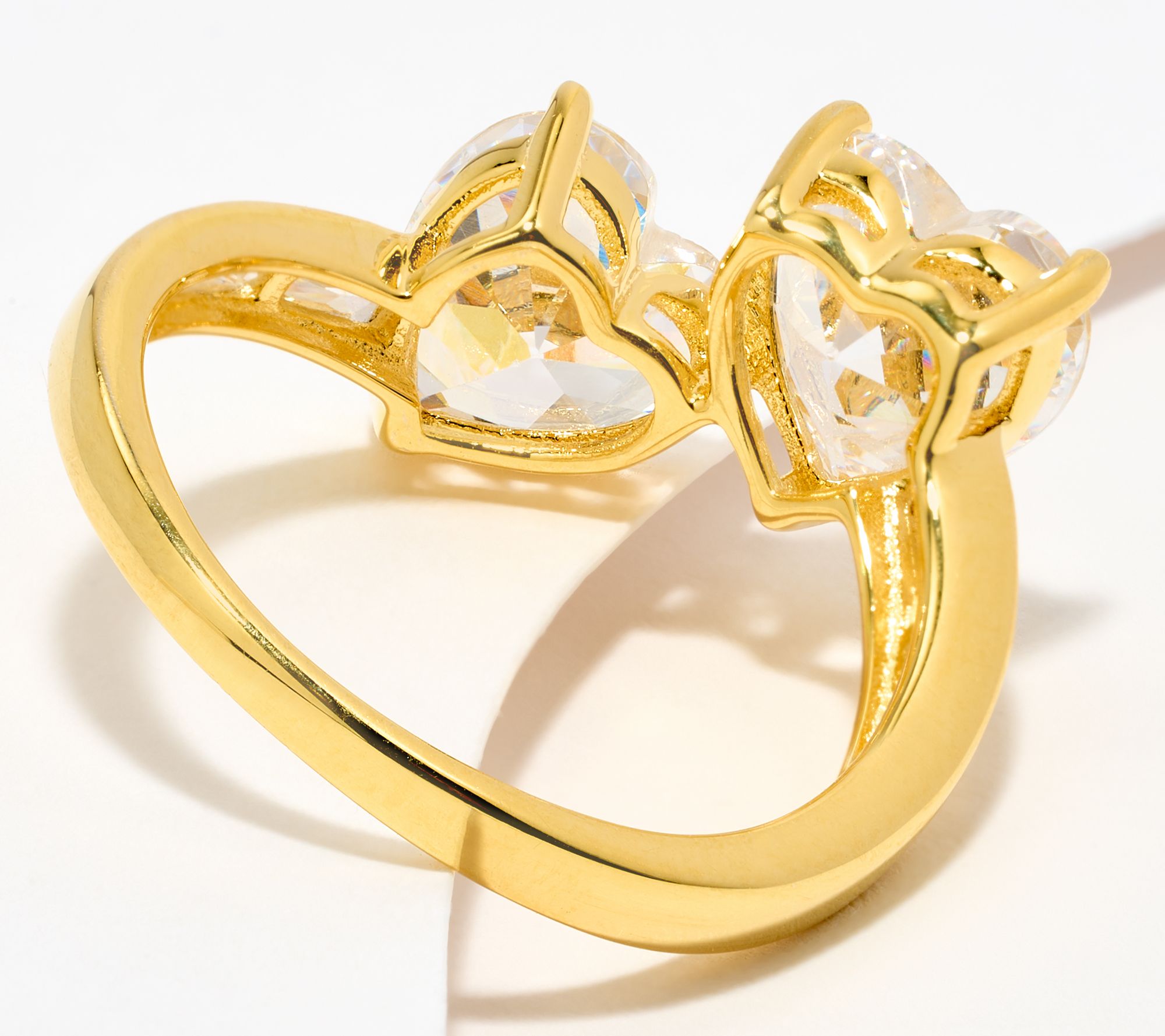 • Double-heart bypass design; heart-cut, prong-set Diamonique simulated diamonds