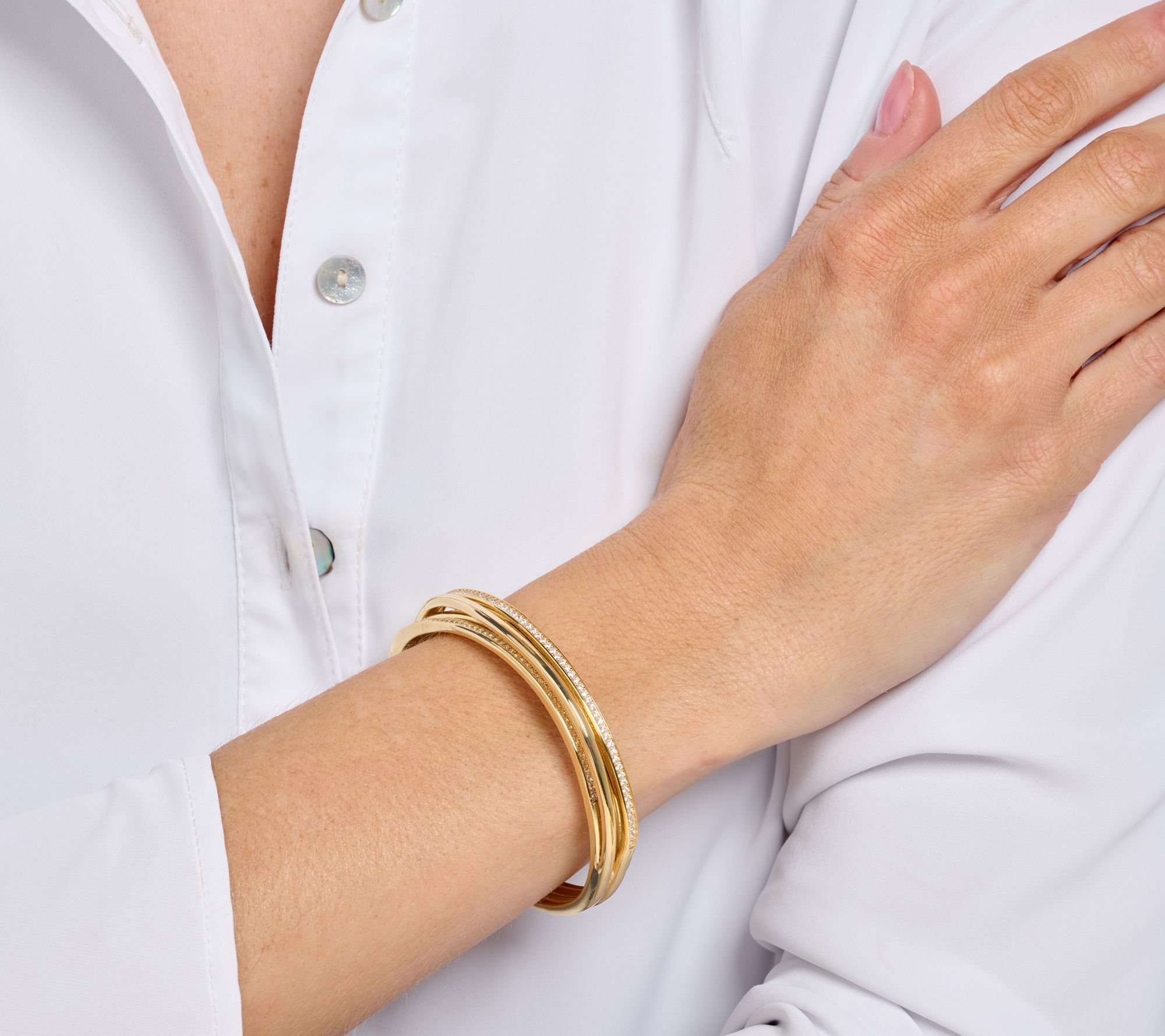 Prong-set, round Diamonique simulated diamonds give this hinged cuff its sparkle and shine.
