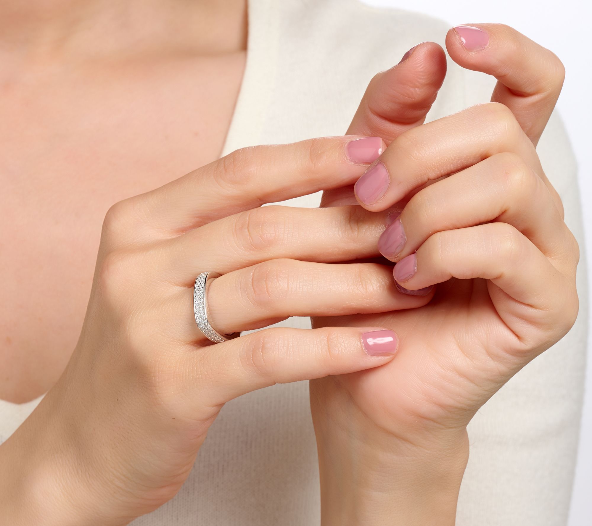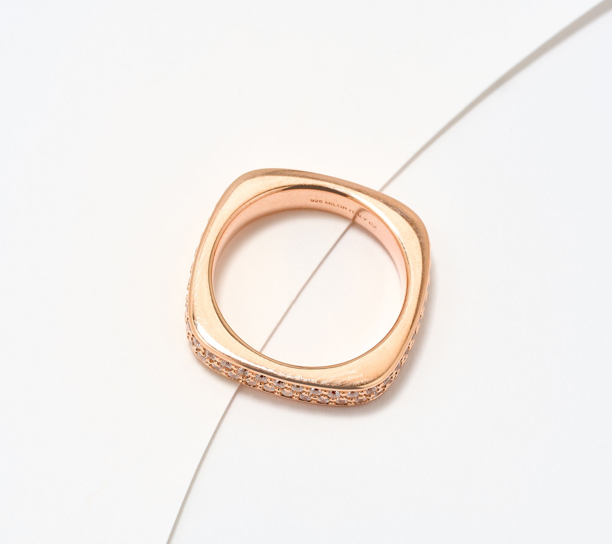 "As Is" Diamonique Italia Squared Pave Band Ring, Sterling Silver