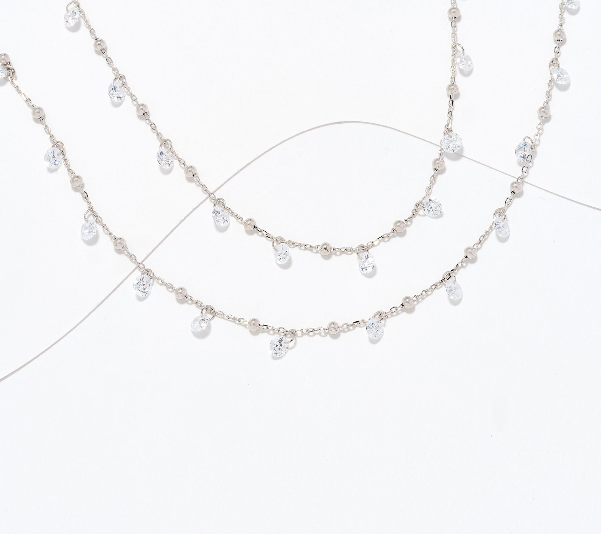 "As Is" Diamonique Layered By The Yard Necklace Sterling Silver