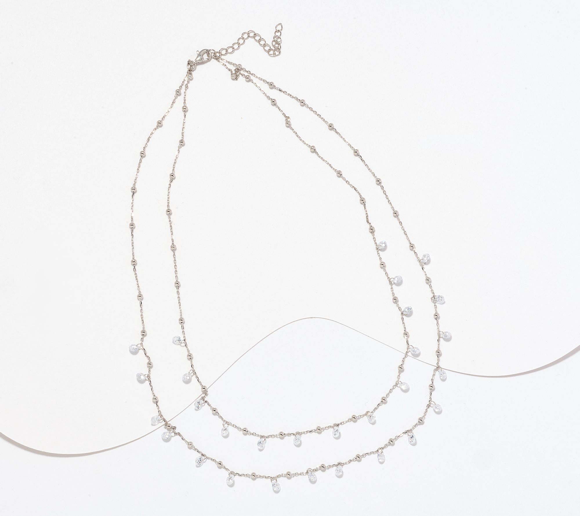 Double down on your desire for dazzling accessories. This double-layer design necklace with dangling cubic zirconia Diamonique® simulated diamonds is sure to wow the crowd -- again and again.