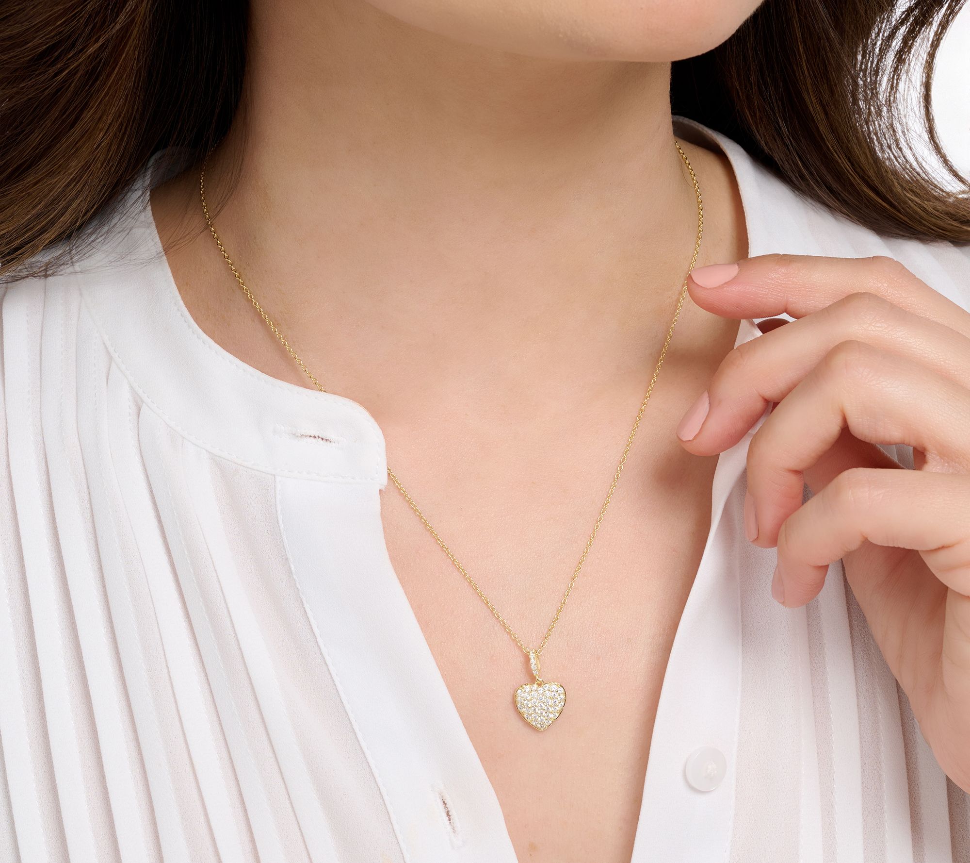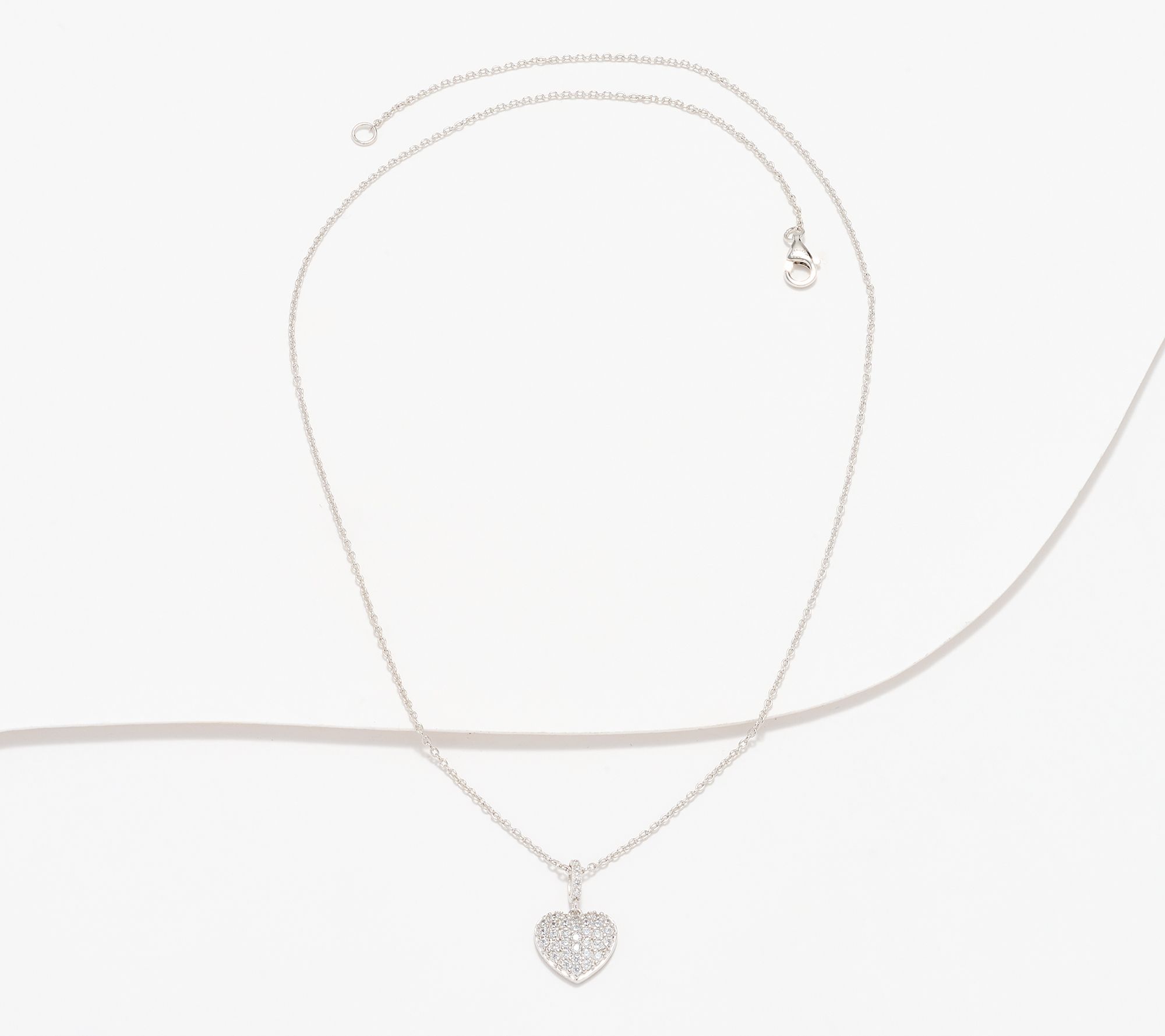 Puffy heart pendant with pave-set, round Diamonique simulated diamonds; link chain