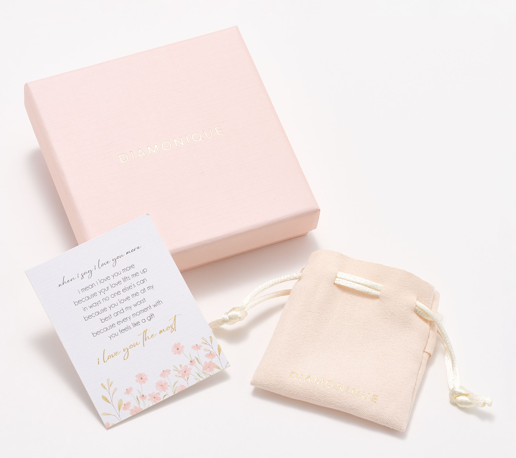 Total Diamonique® simulated diamond weight is approximately 0.38 carat; all clear Diamonique simulated diamonds are cubic zirconia