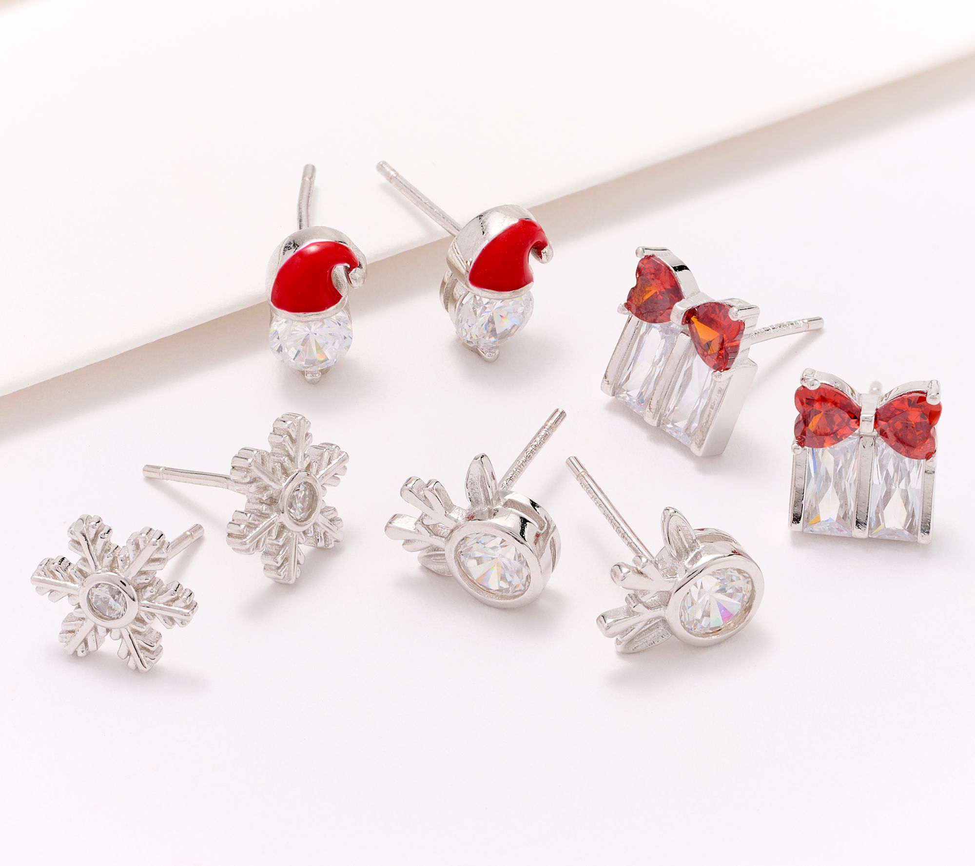 This set of seasonal stud earrings truly captures the spirit of Christmas. Make someone's holiday merry and bright with each sparkling pair of Santa hats, reindeer, snowflakes, and presents.