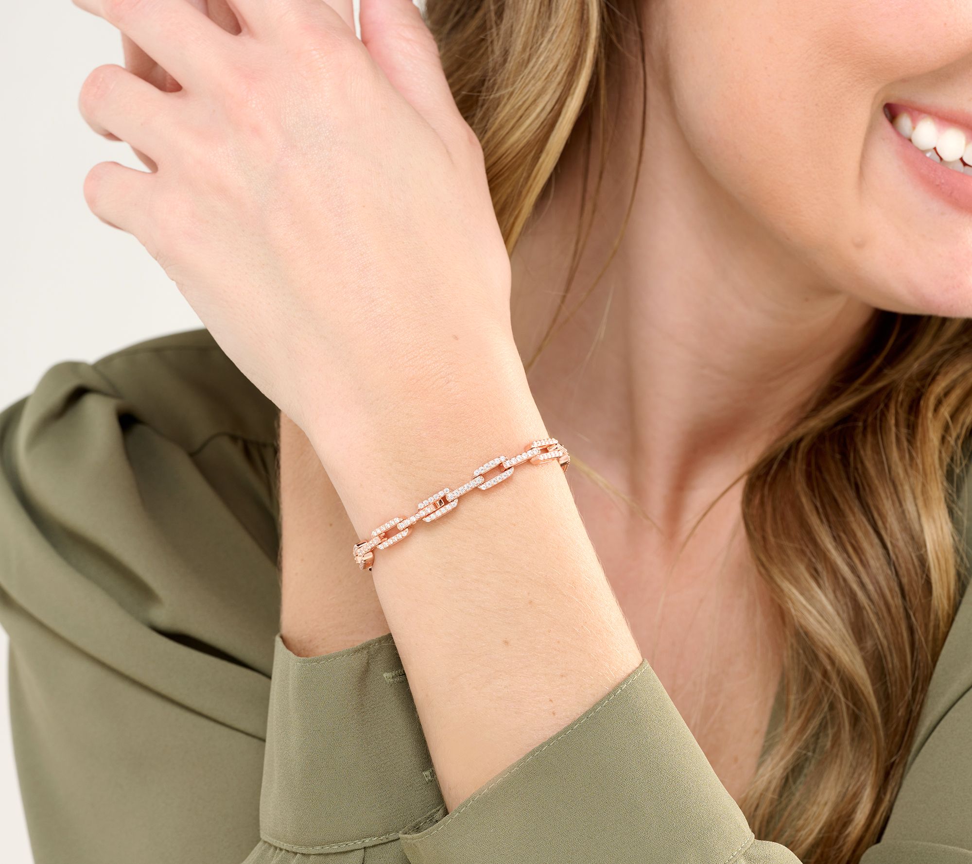 Full dance card? Channel the romantic glamour of the Regency era with this sparkly link bracelet -- a collab with Kathy Levine -- accessorizing your look.