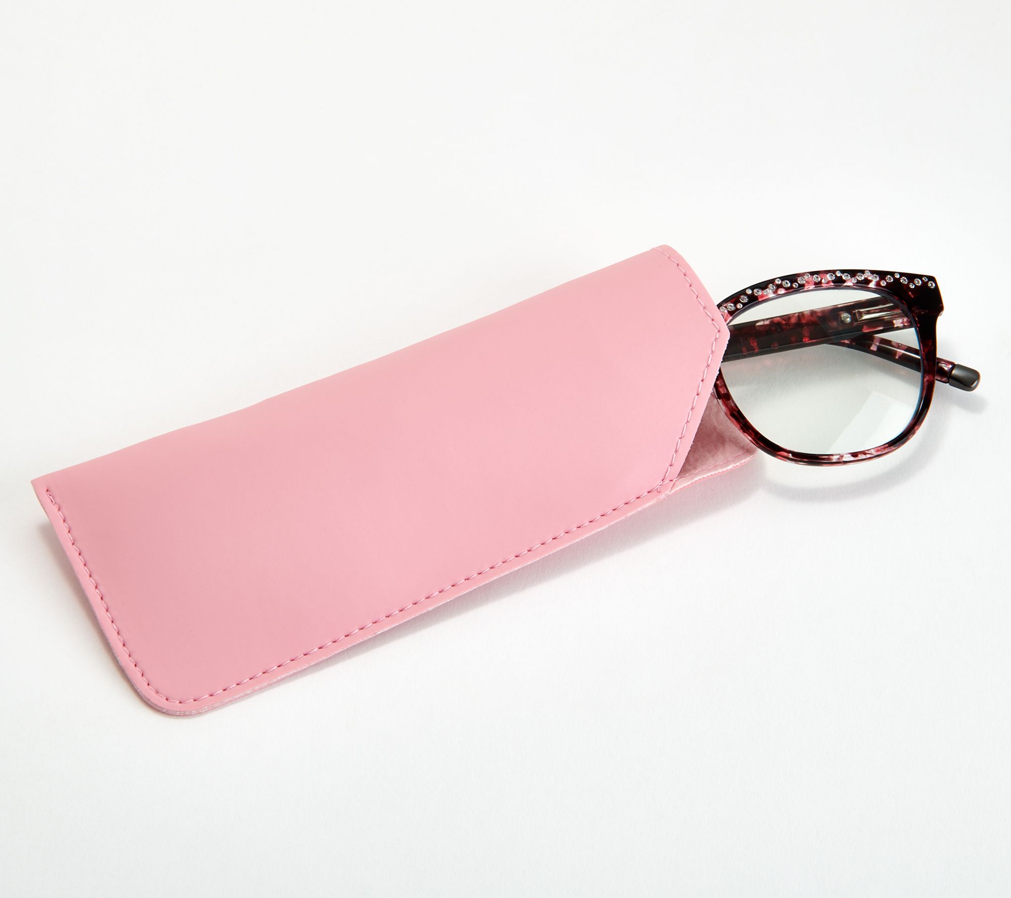 Flashy and fun, meet functional. These blue light blocking reading glasses bring the bling with an array of cubic zirconia Diamonique® simulated diamond accents.