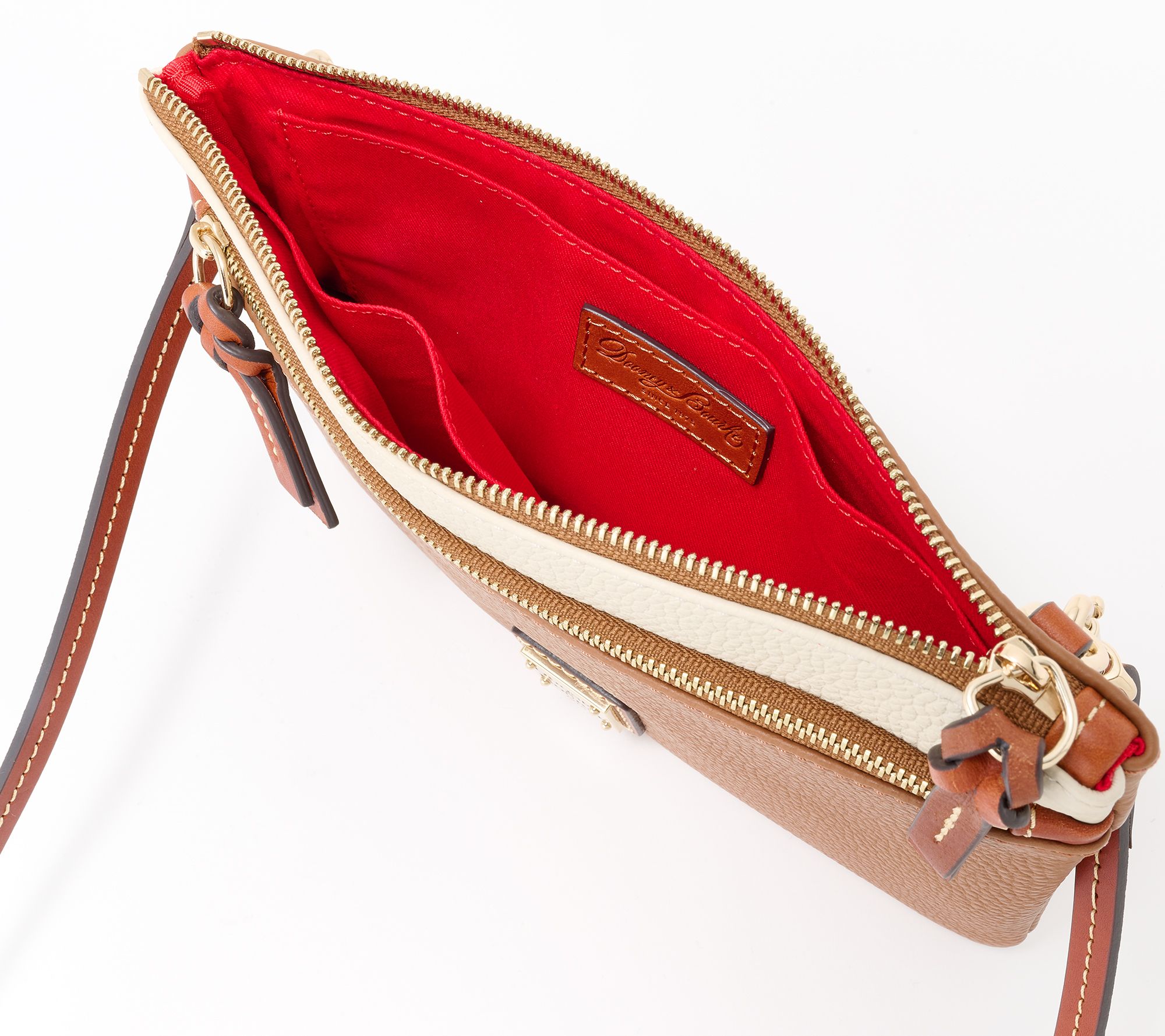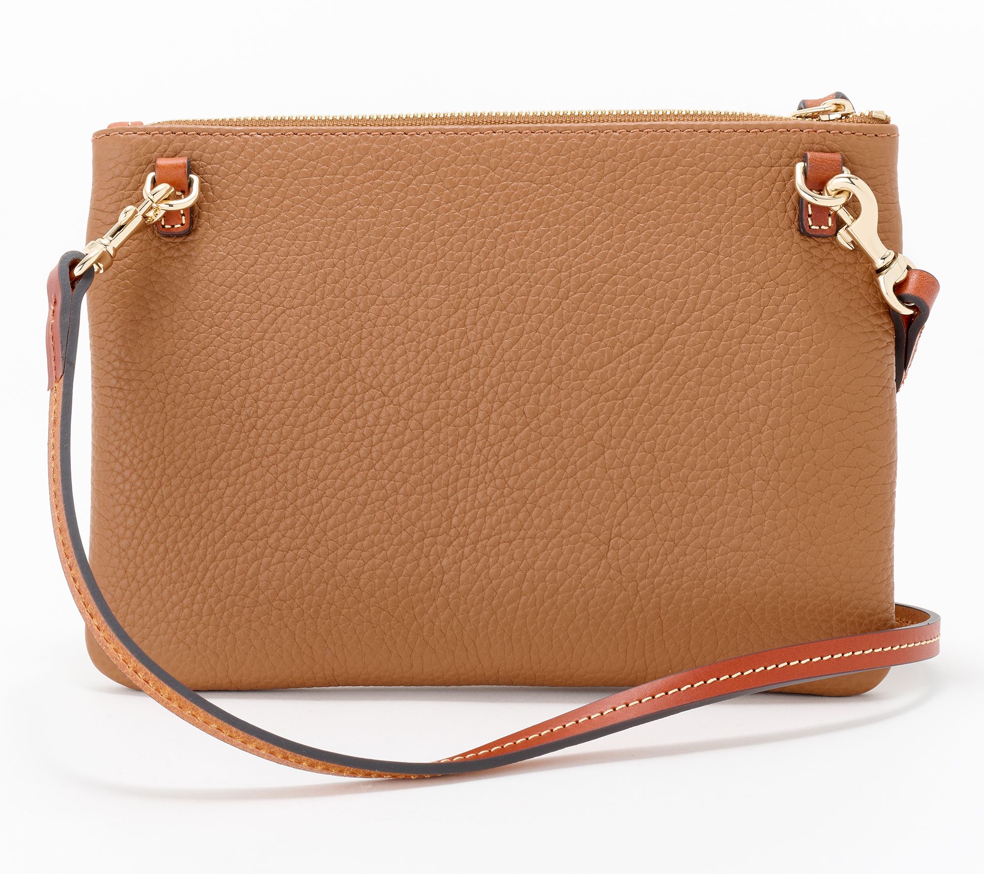 Step out for your day with this color-block pebble leather crossbody and enjoy the stylish convenience it offers. Its sleek design ensures you move around comfortably while keeping your essentials close. From Dooney & Bourke.