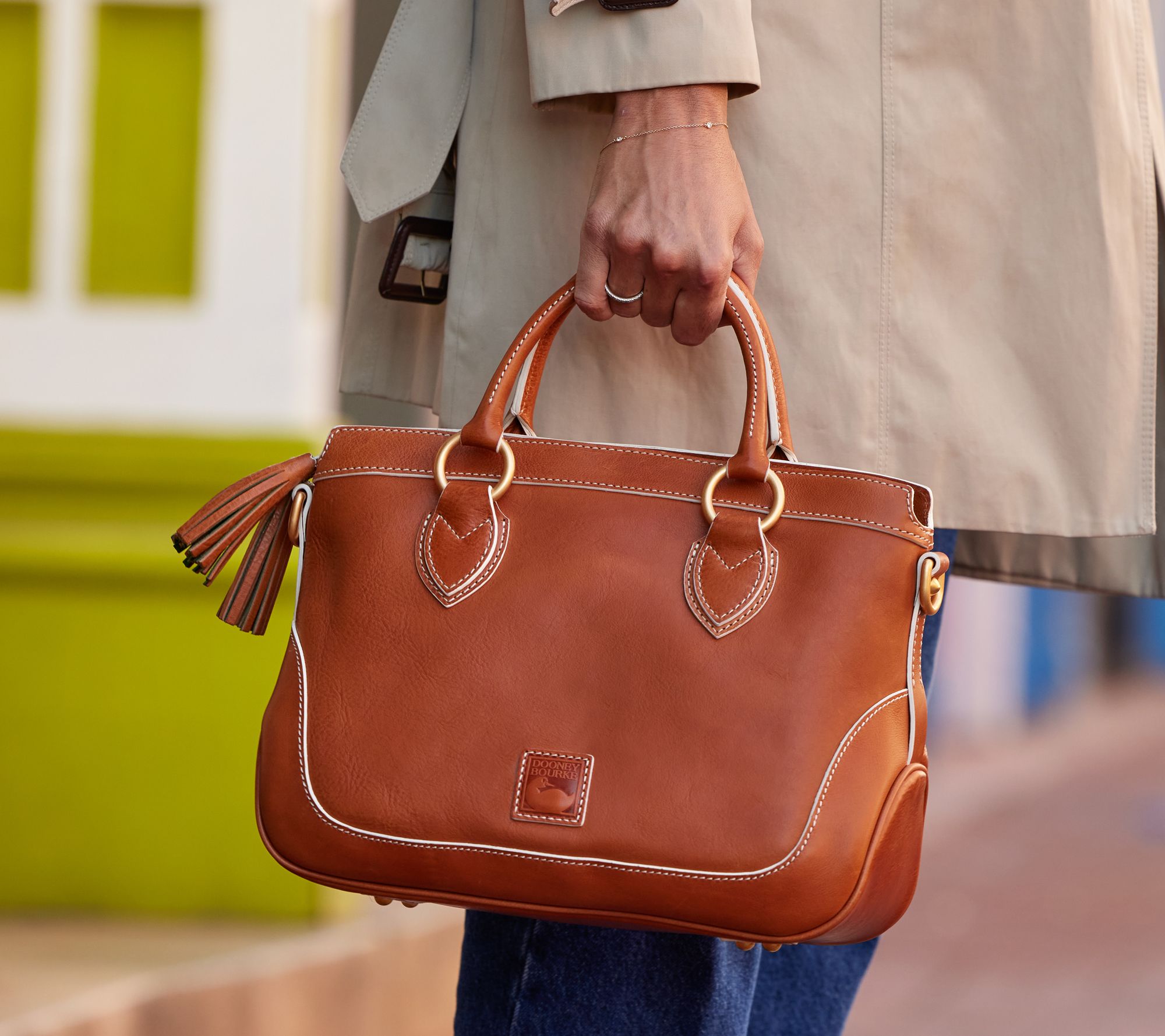 It's a keeper! We're crushing hard on the western-inspired details of this Florentine-leather short-handle shopper. So fresh with our daily denim! From Dooney & Bourke.