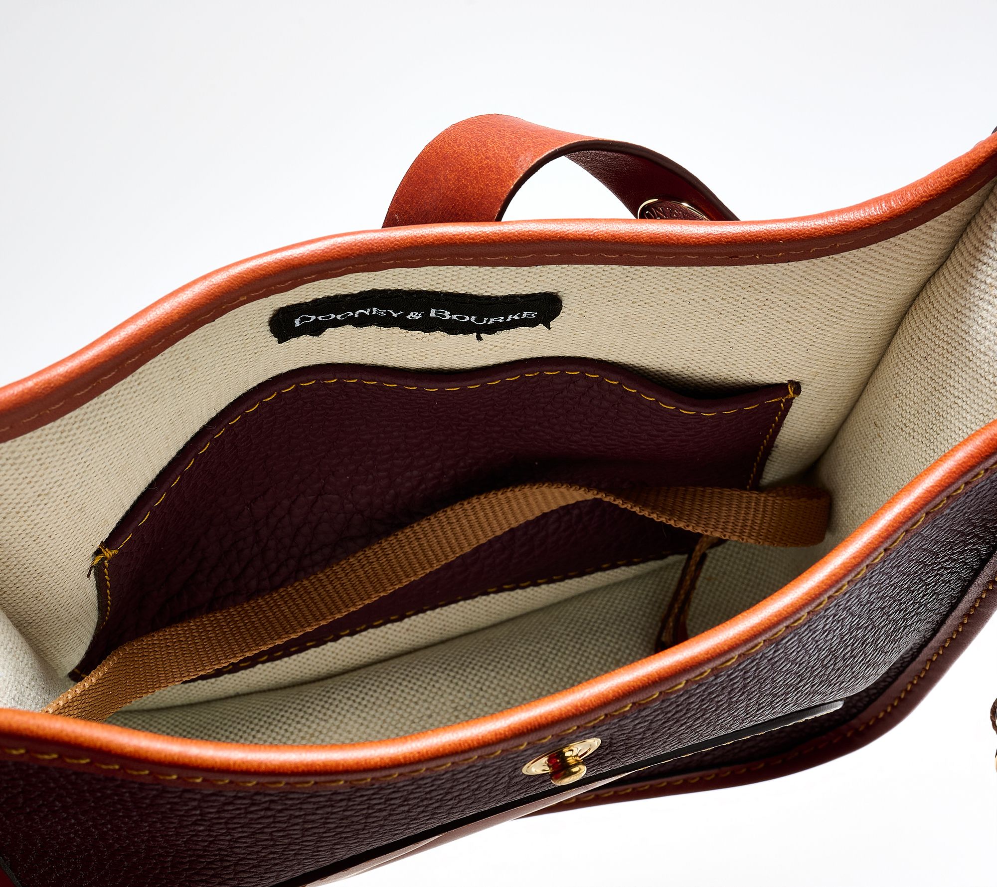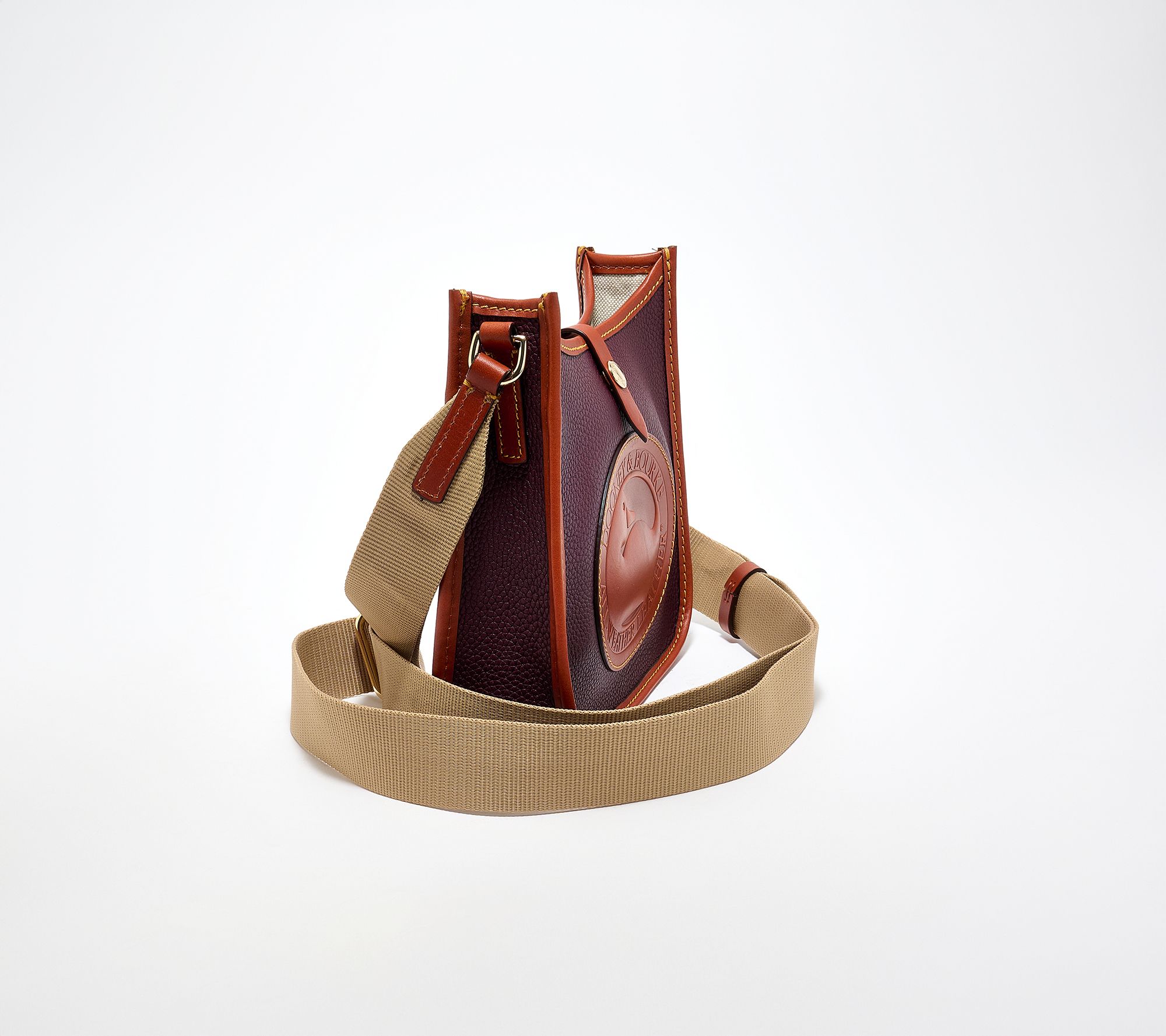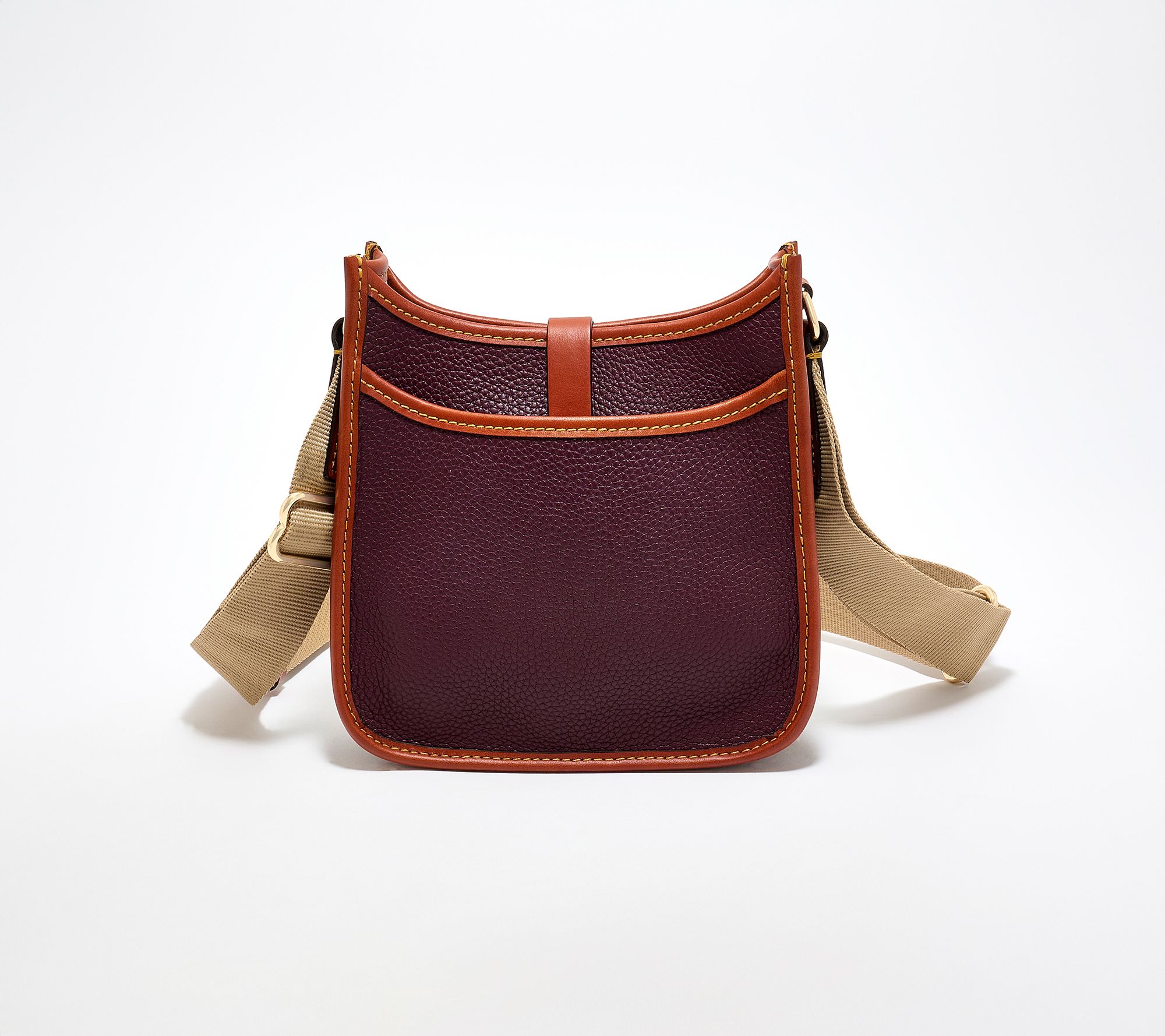 Whether you're heading to a weekend brunch or packing light for an afternoon adventure, this compact leather messenger keeps essentials stylishly organized. The tongue tab buckle closure adds a refined touch, while interior and exterior pockets offer easy access for keys, cards, and more. From Dooney & Bourke.