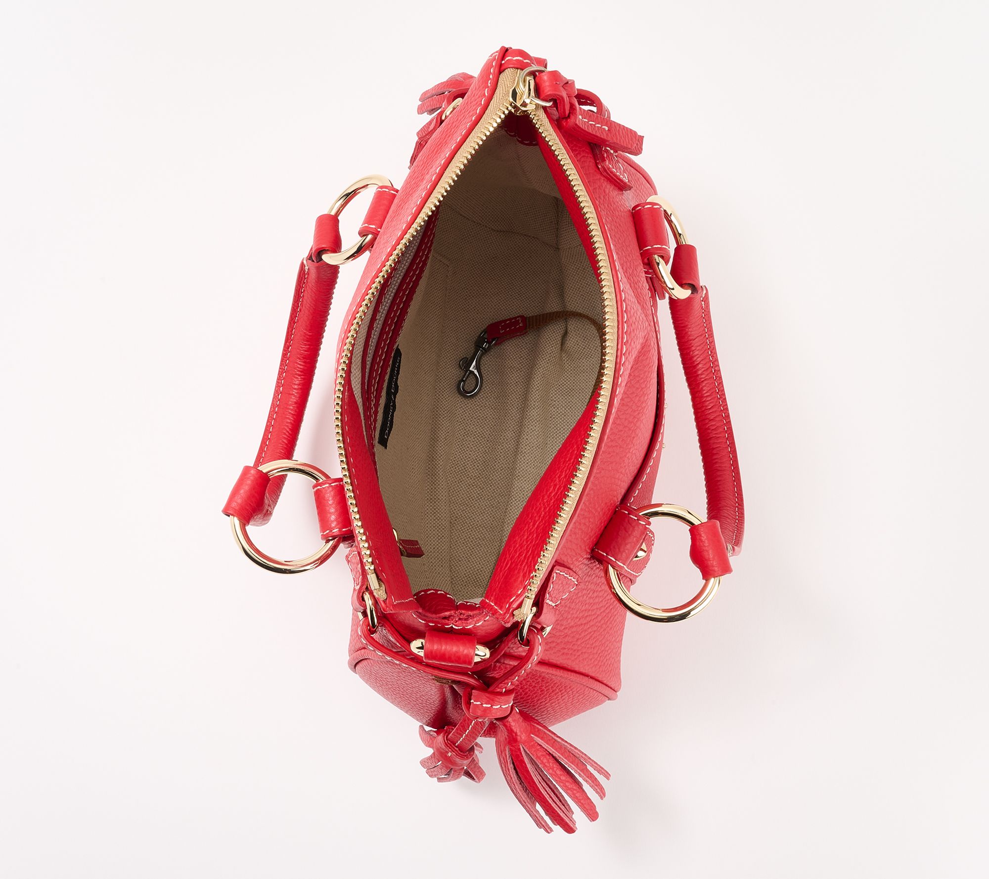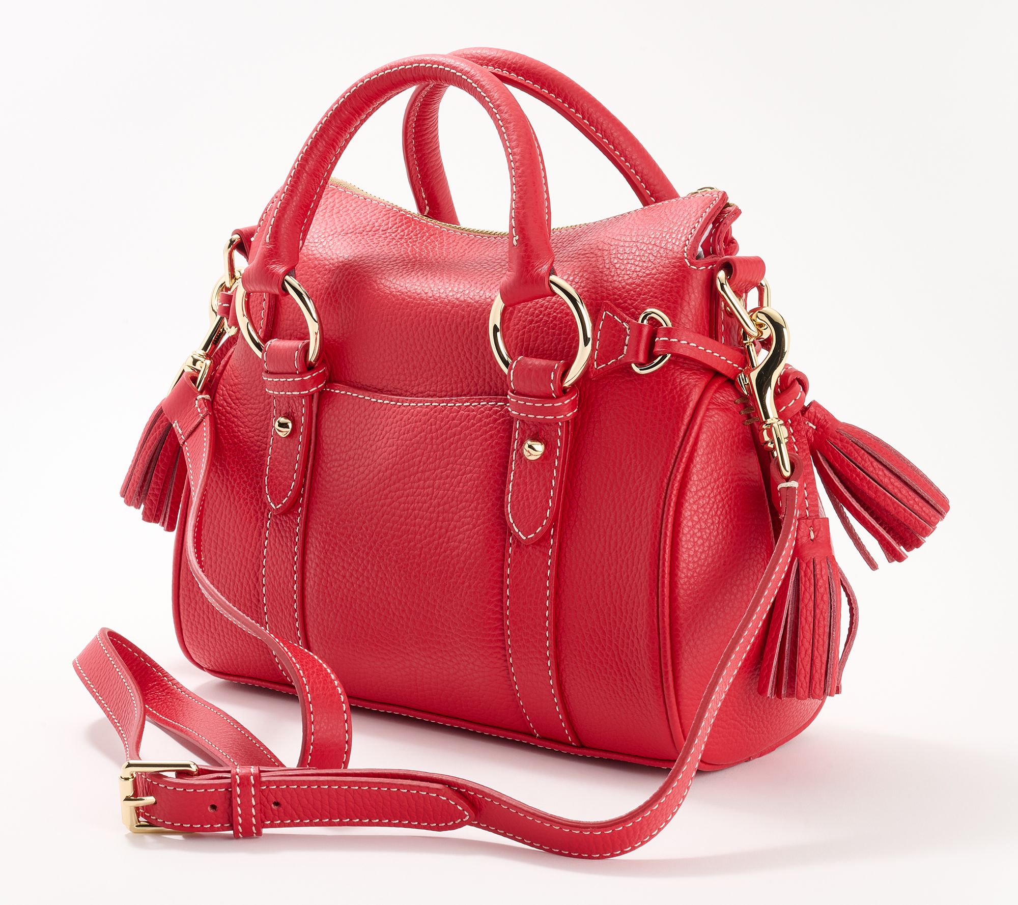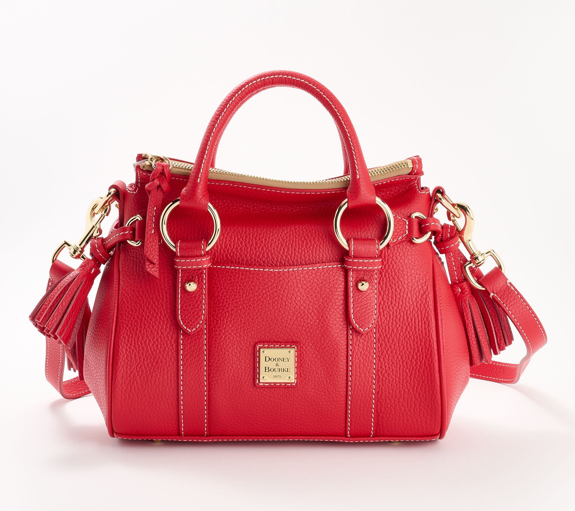 New year, new purse! Upgrade your satchel situation with the luxurious Lucca. This bag sets you up for style success with double handles and a removable crossbody strap -- so your hands are free when you need them, and your look is always impeccable. With tassel details, rich pebble leather, and plenty of pockets, this bag is the perfect bring-along for everyday elegance. From Dooney & Bourke.