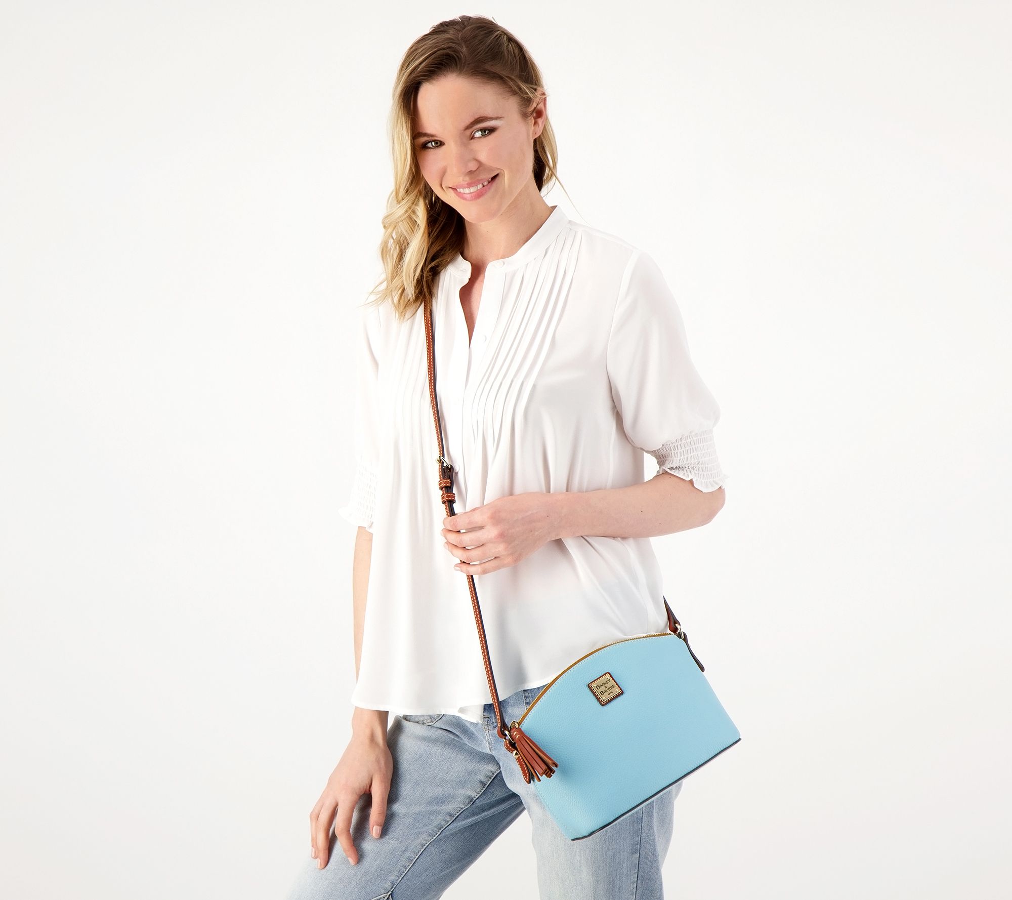 Stay on the go in style with this pebble leather crossbody bag. From Dooney & Bourke.