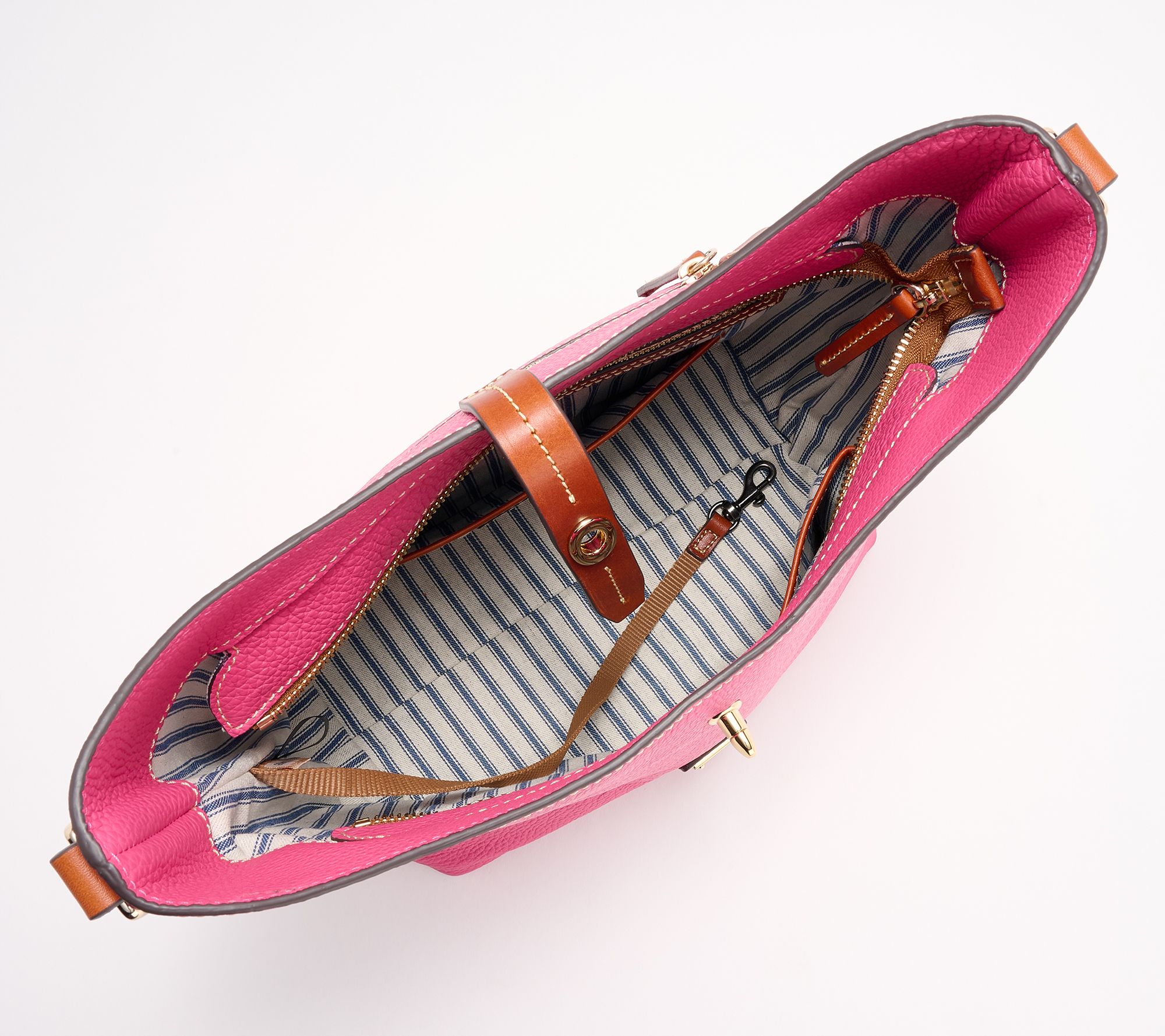 Invest in your style goals with this pebble leather sac -- a must-have for collectors and Dooney newbies alike! The classic piece effortlessly combines designer good looks and functionality, with its shoulder-slung silhouette, interior storage, and removable handle. From Dooney & Bourke.
