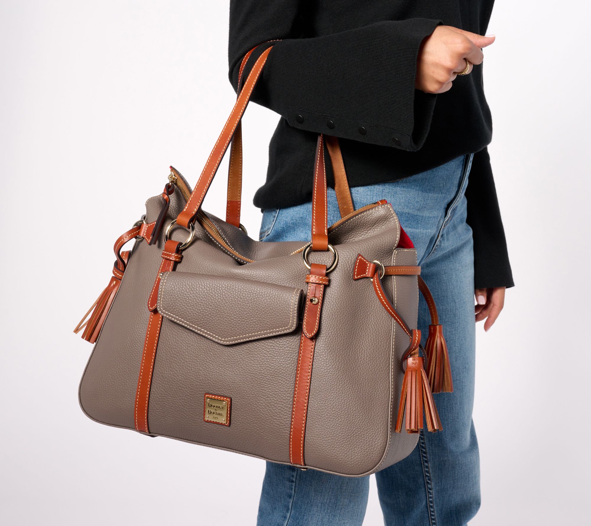 A timeless carryall you'll be rocking for seasons to come, this pebble leather shoulder bag has plenty of room for all the essentials. From Dooney & Bourke.