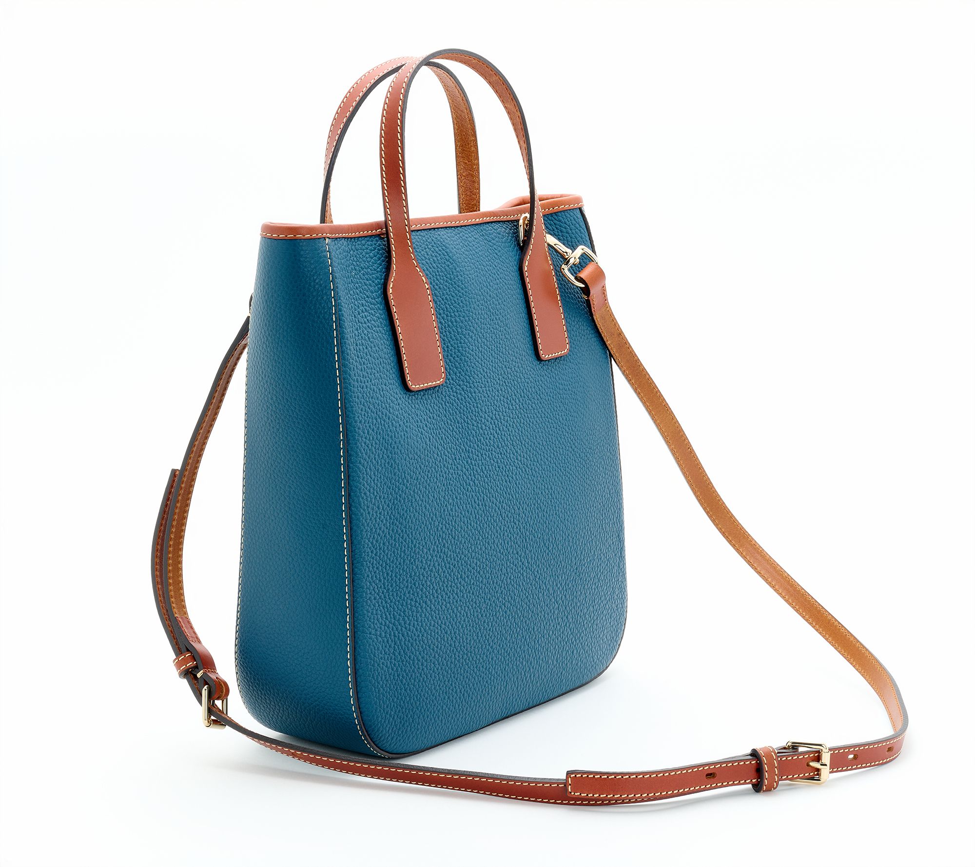 When a packed agenda calls for both function and flair, this versatile carryall rises to the occasion. Slide it over your arm with the structured handles on office runs, or use the adjustable crossbody strap for browsing local shops hands-free. Handy pockets keep you organized and durable pebble leather stands up beautifully to workdays and weekend wanderings alike. From Dooney & Bourke.