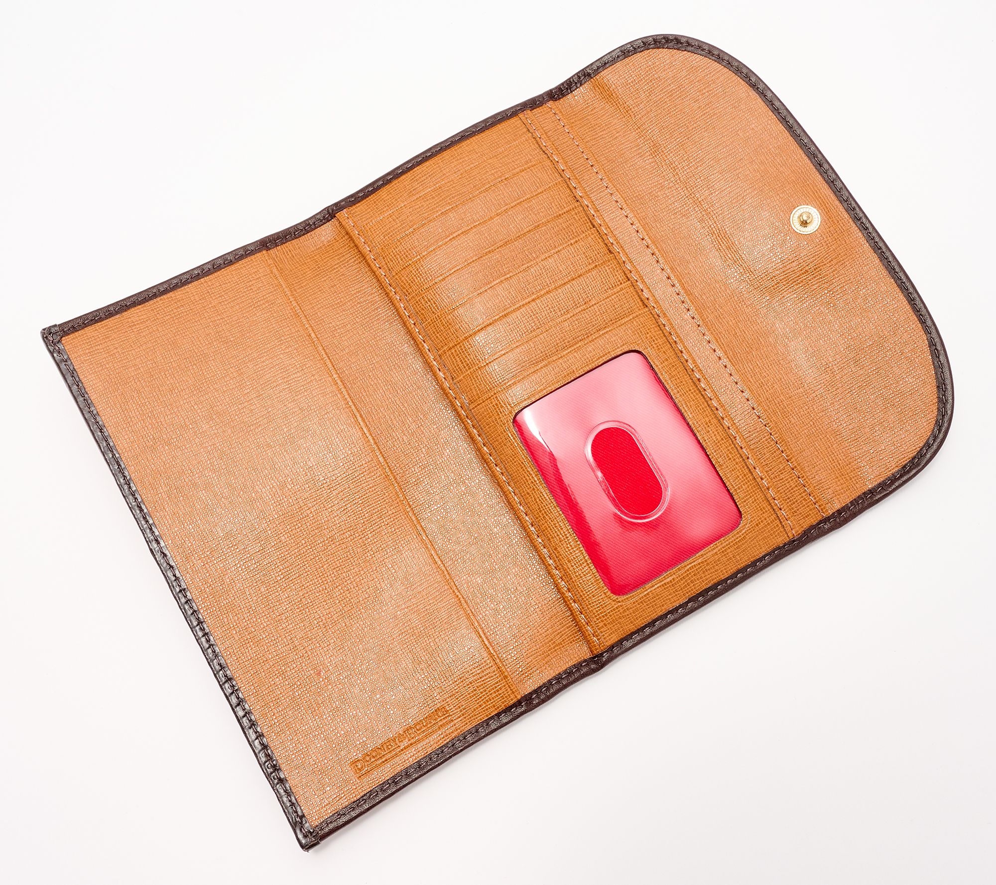 • Lined interior, eight card slots, four slip pockets