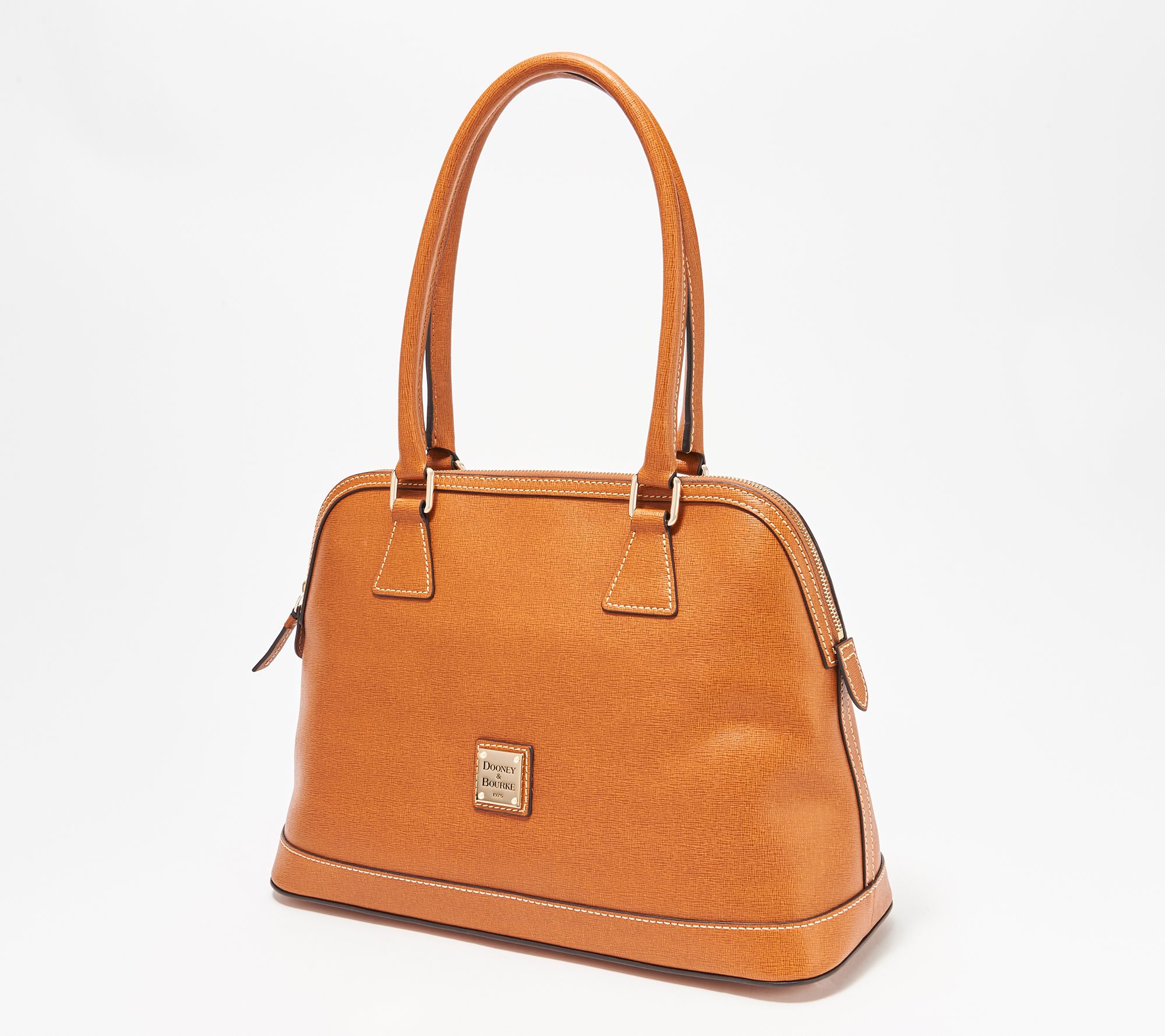 Slip this sassy Saffiano leather satchel on your arm and step out in style. Its classy shape updates any look whether you're going to work or out for the evening. From Dooney & Bourke.