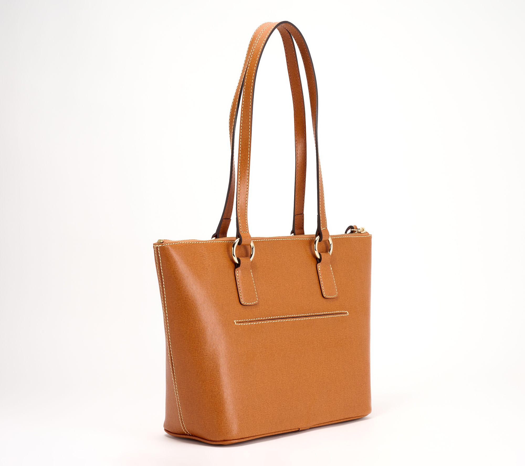 Destination: elegant organization. Whether you're headed to the office or a weekend brunch with your besties, this Dooney & Bourke saffiano leather zip tote makes the perfect companion. The chic exterior and spacious design make it easy to carry everything you need while looking polished and put-together. From Dooney & Bourke.