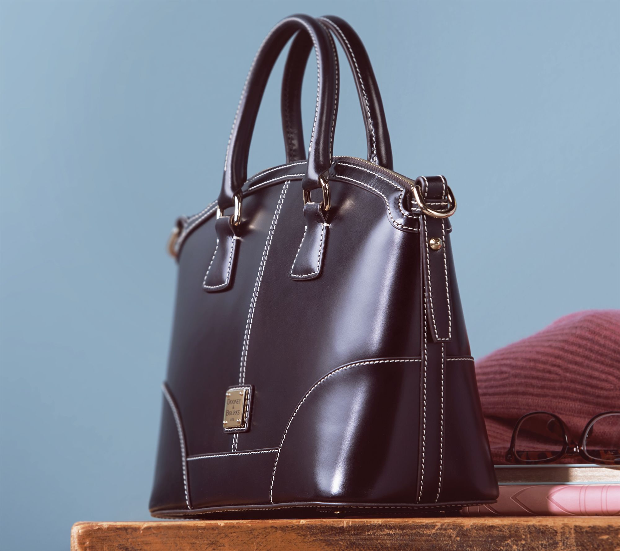With its chic silhouette and smooth Florentine leather, this domed satchel takes the timelessness of a classic design and makes it shine with modern details you'll want to carry today, tomorrow, and into the future. From Dooney & Bourke.
