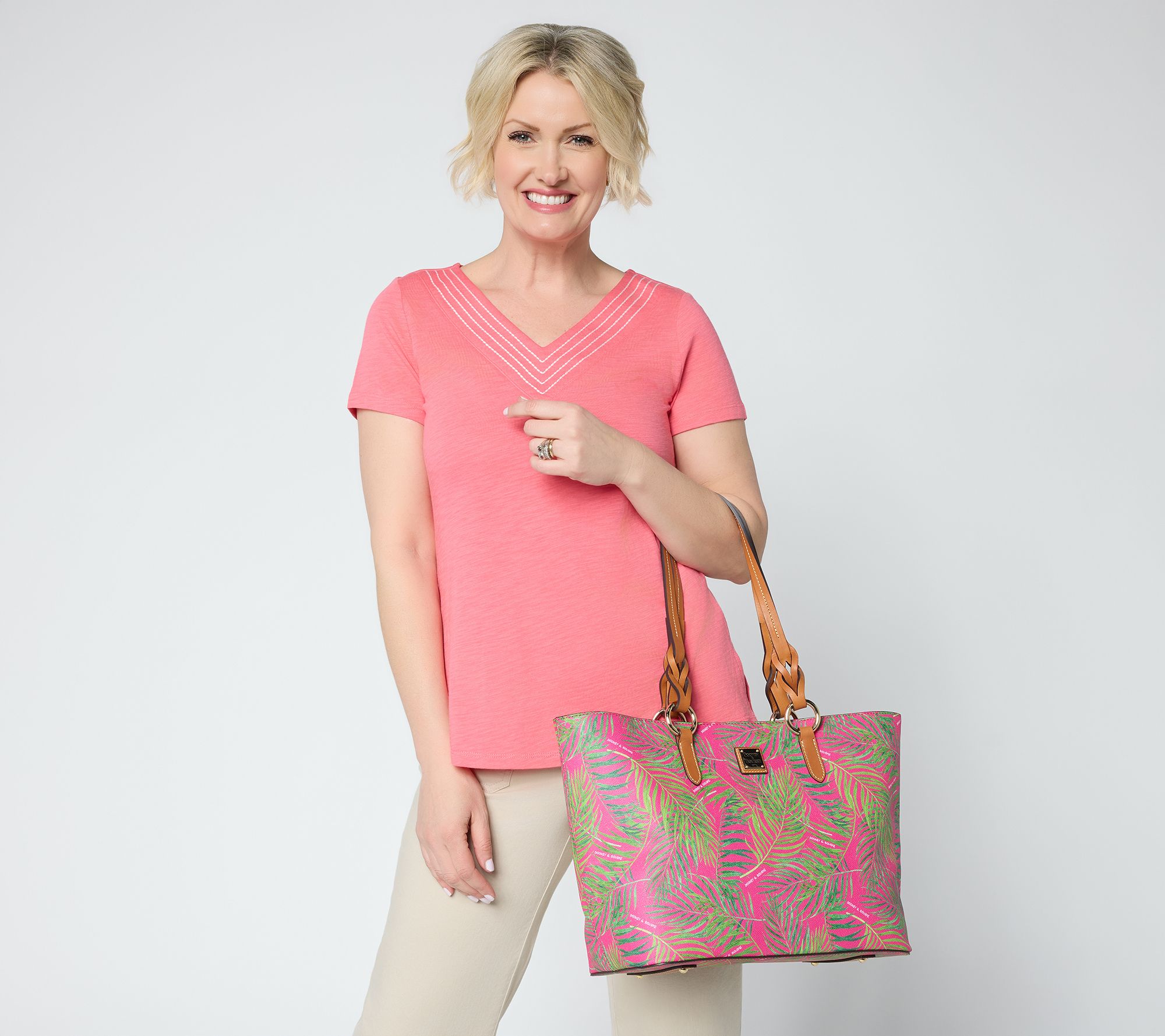 Whether you're heading to work or off for a day of shopping, this tote offers spacious ease and everyday style. Roomy compartments, smart pockets, and sturdy handles keep your essentials organized and accessible, while chic accents add flair to your routine. From Dooney & Bourke.