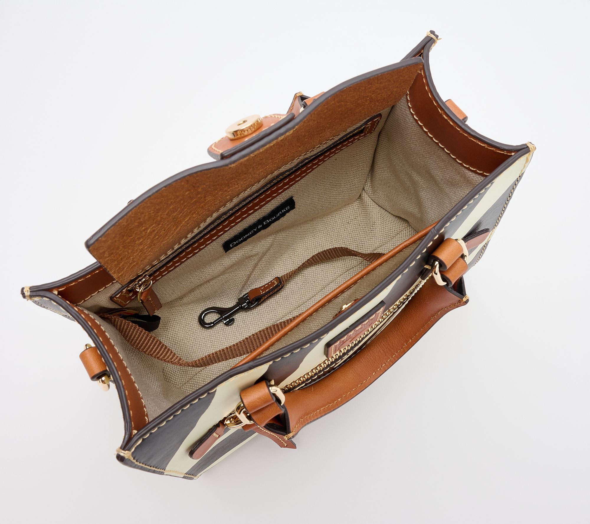 Go wild! Whether you're exploring the city or meeting friends for lunch, this vibrant crossbody keeps your essentials close while making a bold statement with its zebra pattern. The mini size offers just-right space, while the removable strap lets you easily switch to a chic handheld look. From Dooney & Bourke.