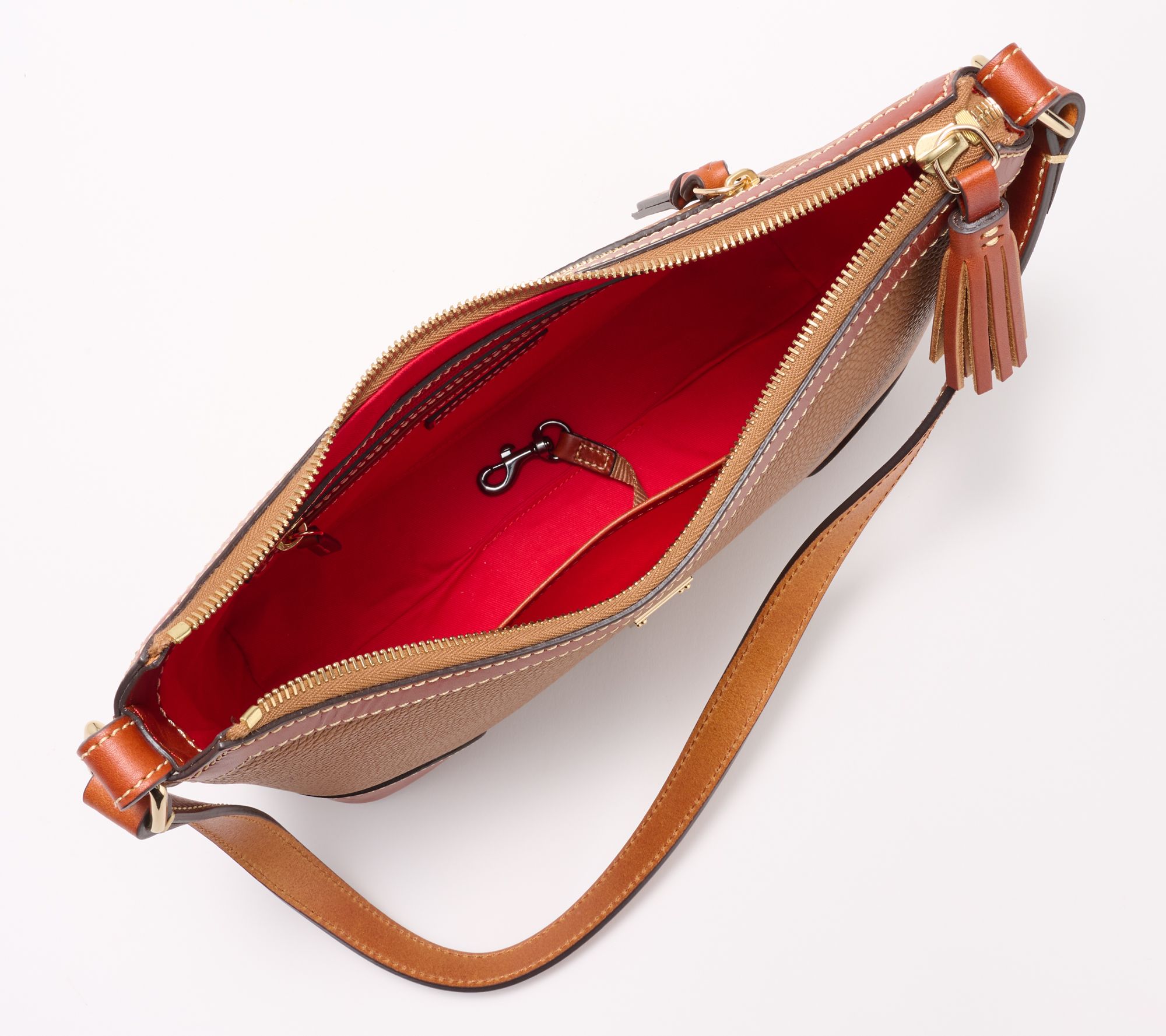 Work life meets weekend life. Pack it in for the day in this office-chic pebble-leather shoulder bag with more than enough room for after-hours essentials. From Dooney & Bourke.