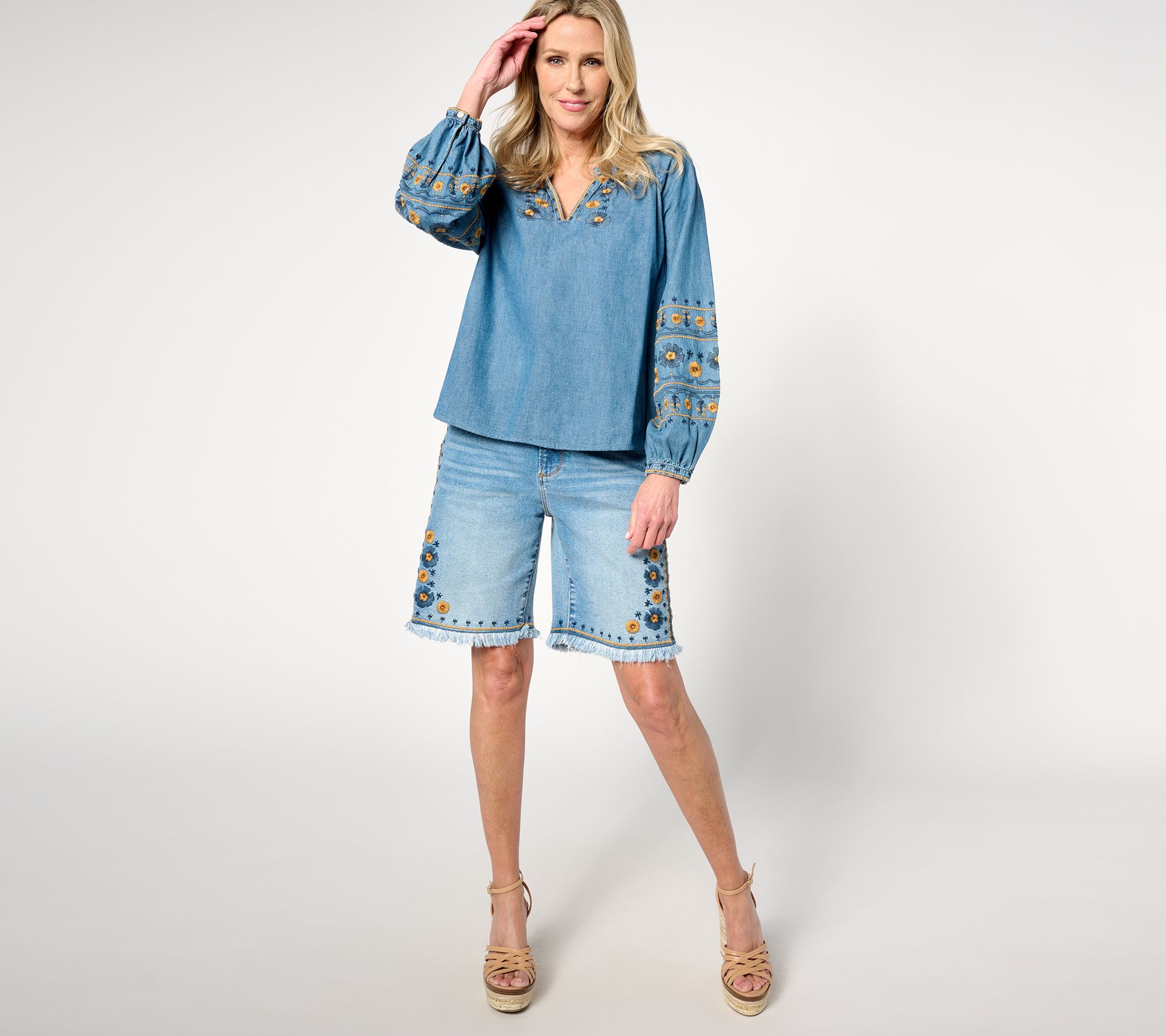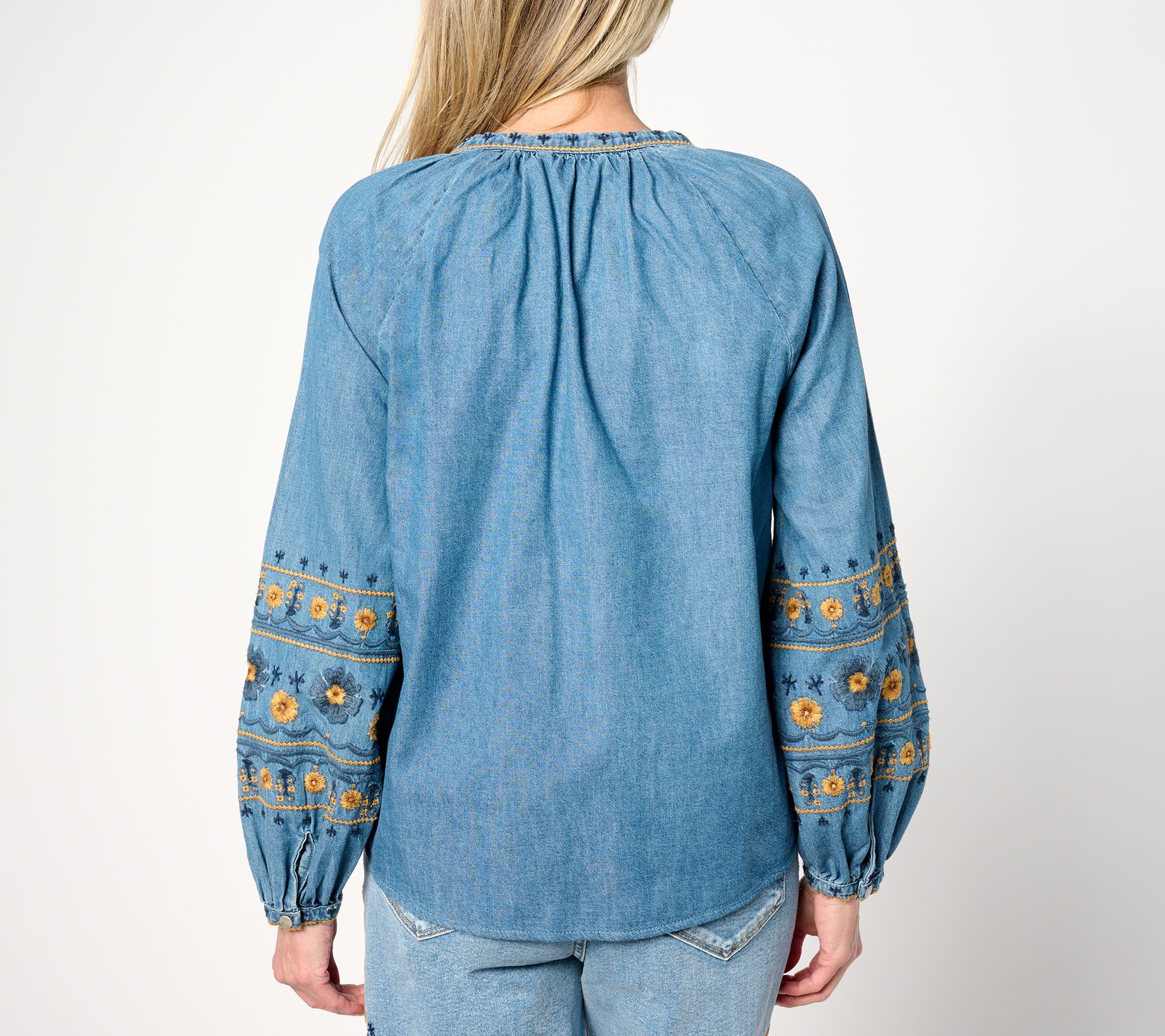"As Is" Driftwood Jeans Chambray Embroidered Blouse