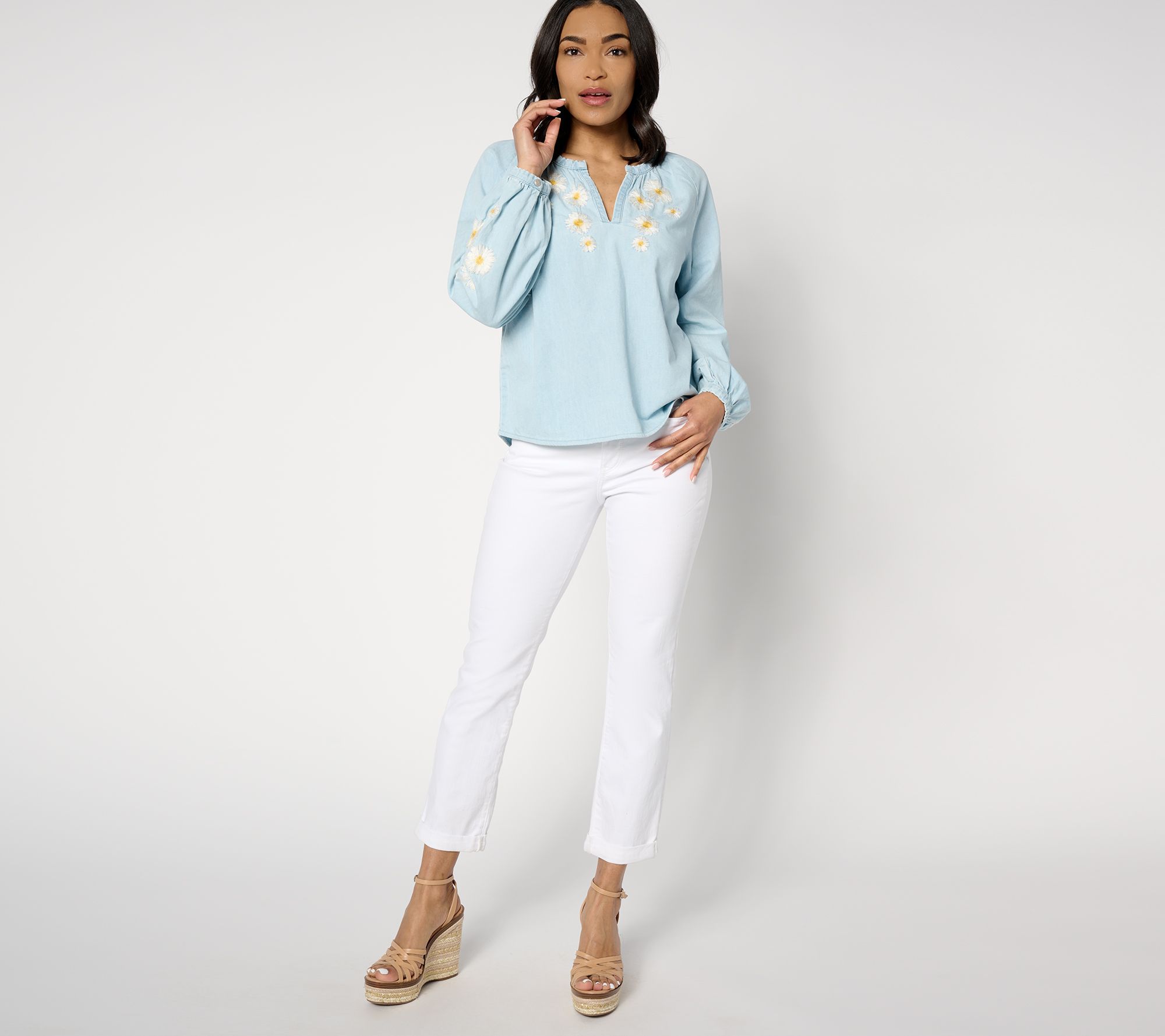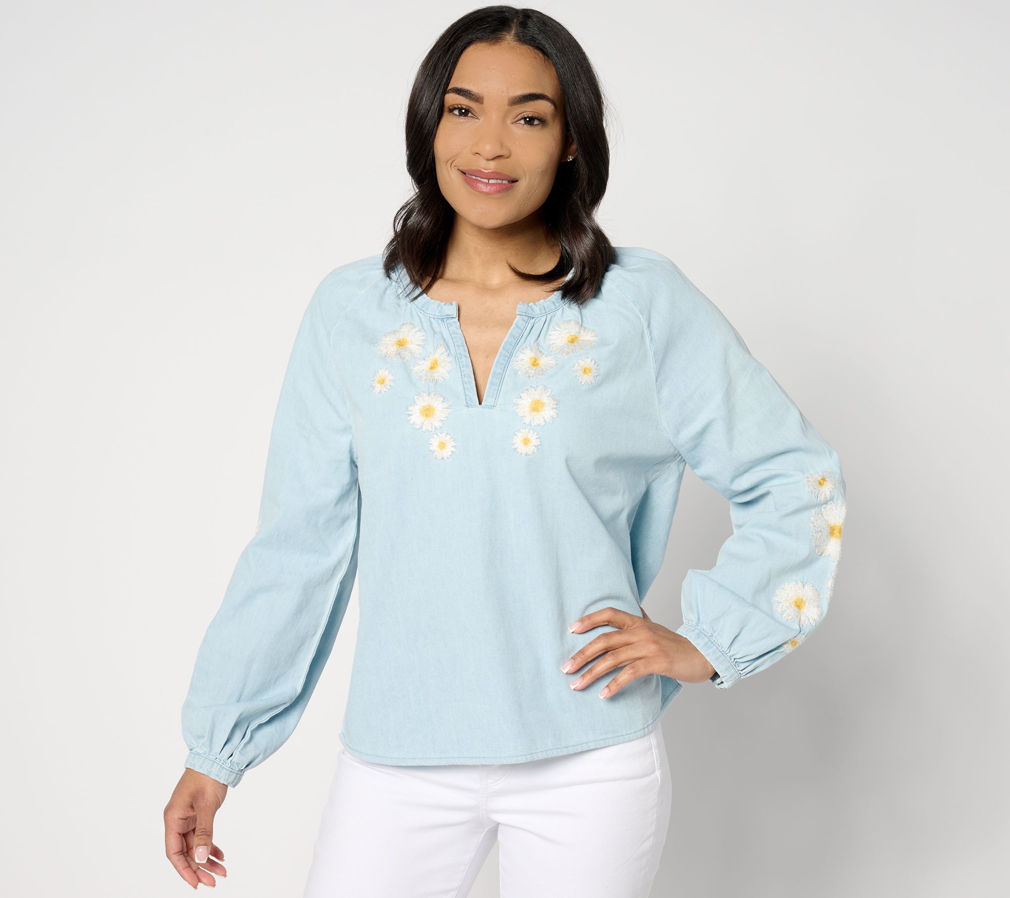 "As Is" Driftwood Jeans Chambray Embroidered Blouse
