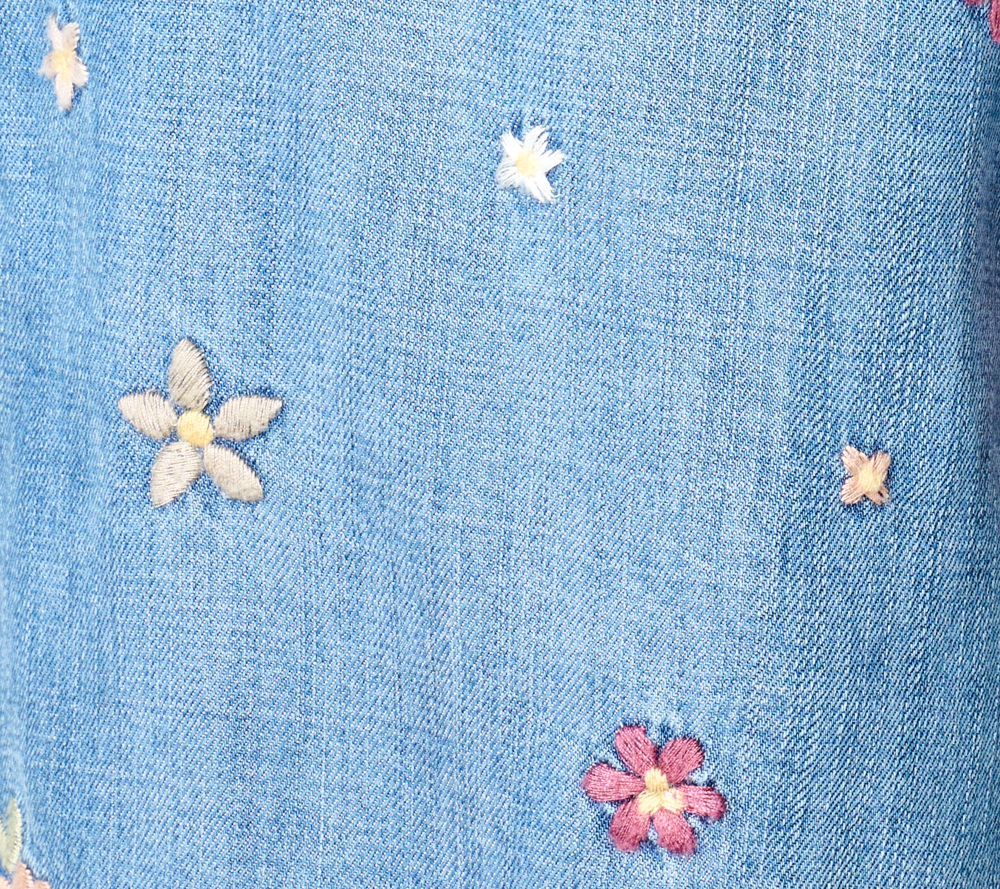 The casual-chic comfort of your favorte denim shirt crosses over into dressier territory with Driftwood's Mabel. This soft lyocell design embraces a laid-back aesthetic with rolled sleeve cuffs, chest pockets, and an easy button front, while the fresh embroidery sprinkled across the dress hem adds spunk to the sun-washed look. From Driftwood.