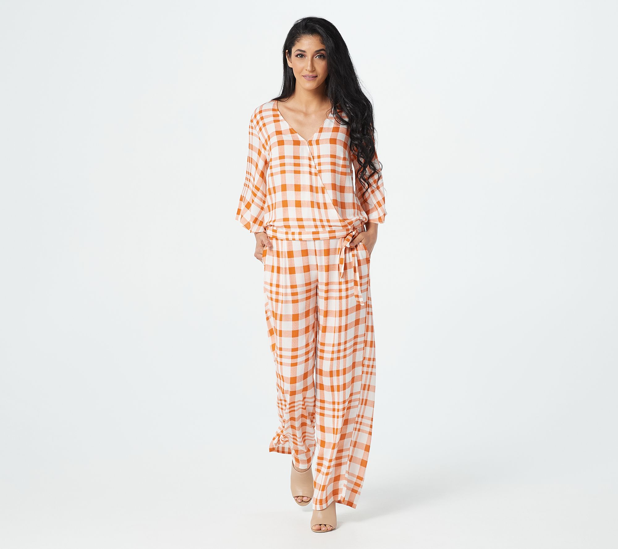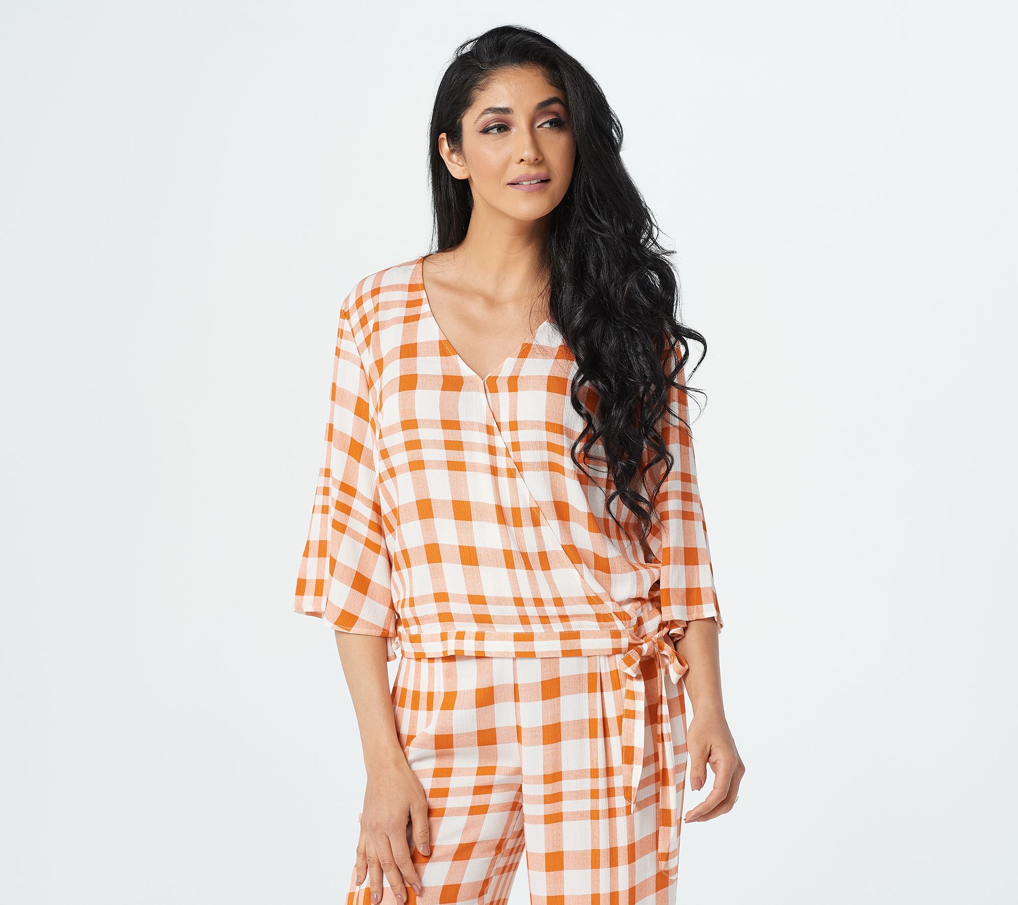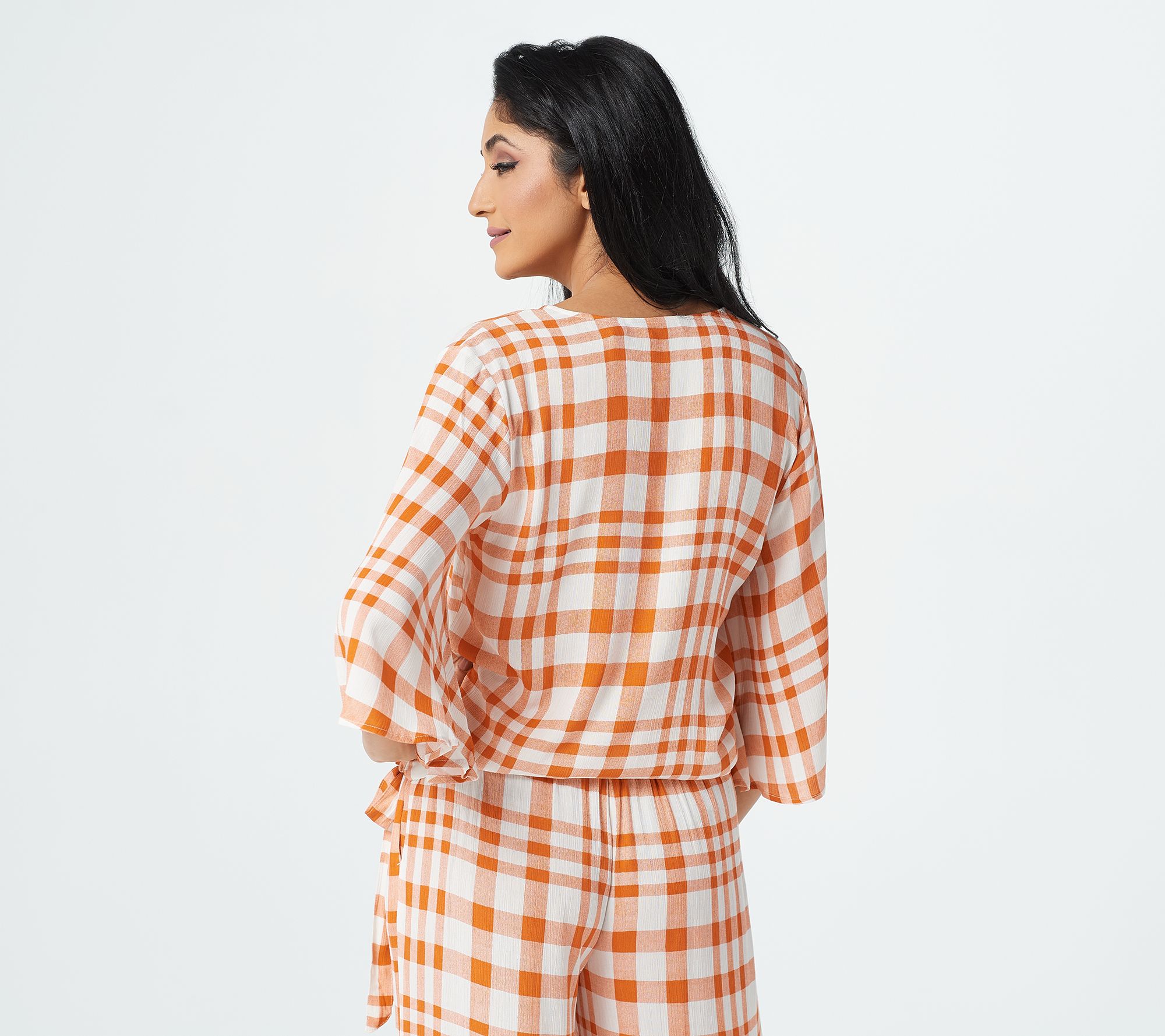 "As Is" Du Jour Picnic Plaid Flutter Sleeve Wrap Top