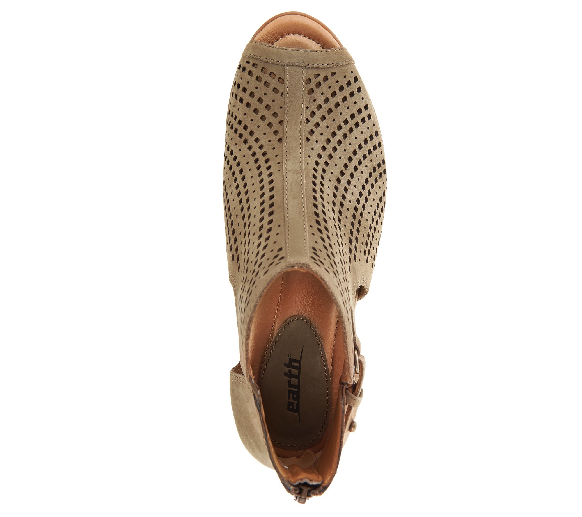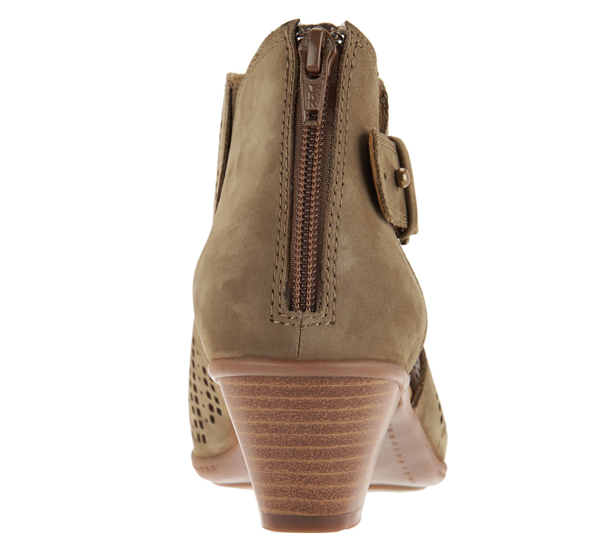 "As Is" Earth Nubuck Perforated Peep-toe Booties - Keri