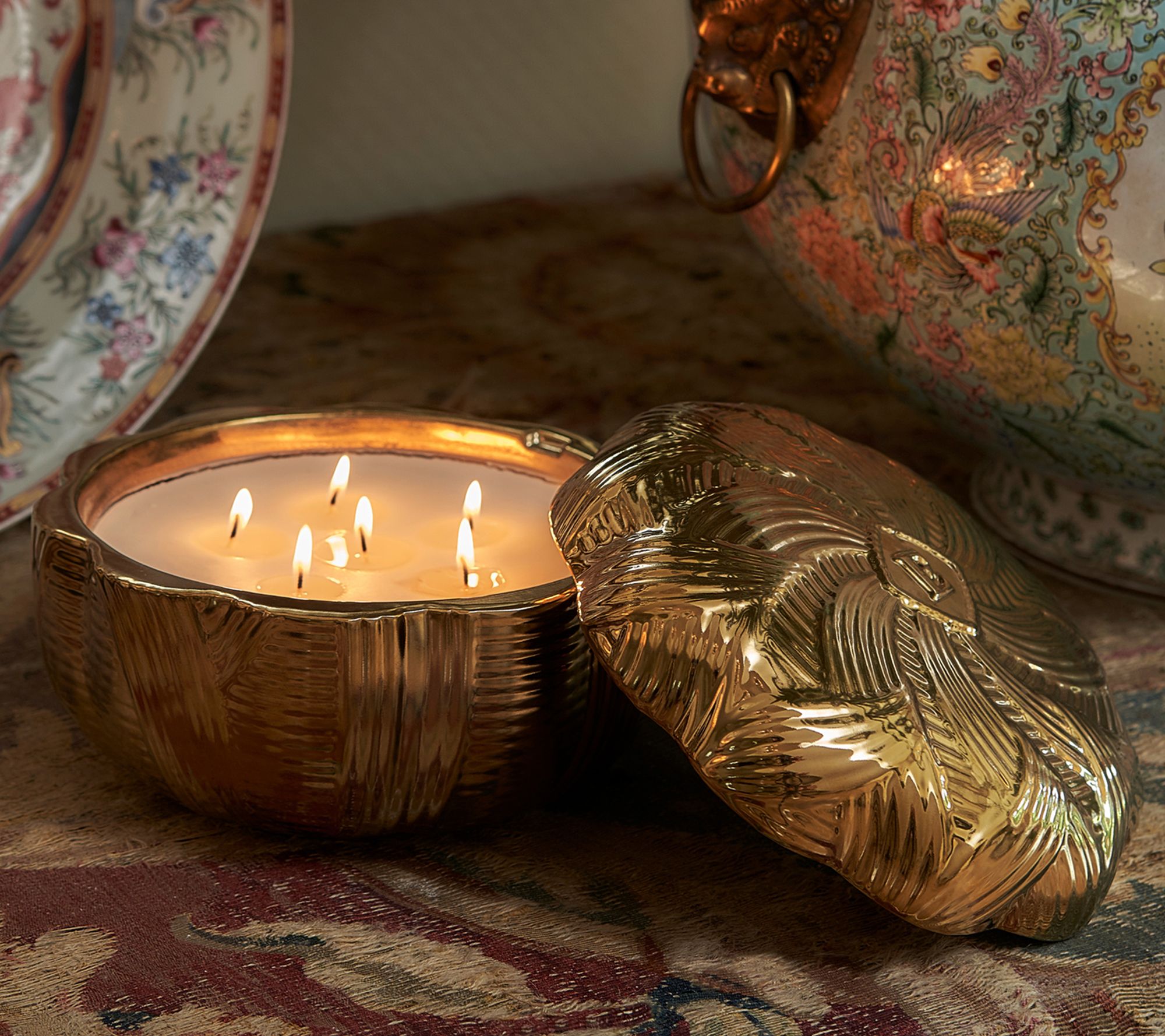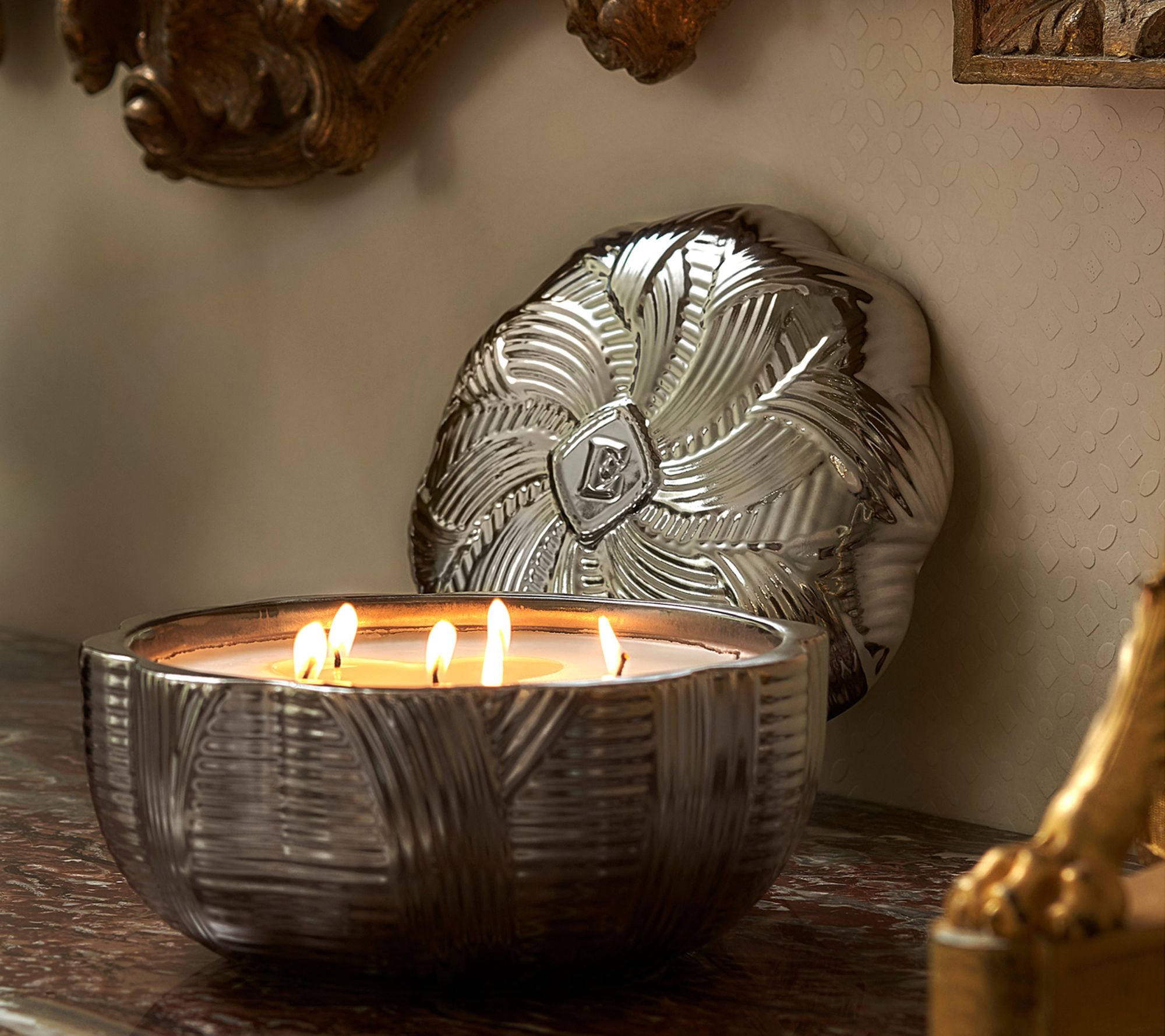 Celebrate the season with a centerpiece (and sensory experience) like no other. Born of a collaboration between Elton John and Harry Slatkin and inspired by Elton's home in England, this decorative candle deserves a prime spot in your decor so all can admire its glorious six-wick glow (yes, six!), festive fragrance, and luxurious packaging.